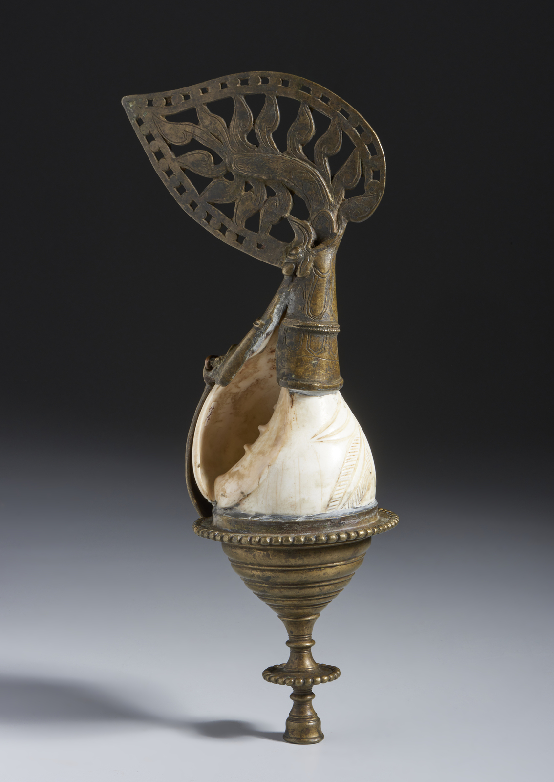 Arte Indiana - Conchiglia rituale con montatura in ottone India, XX secolo .