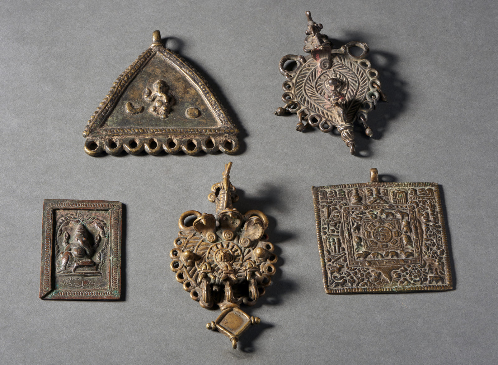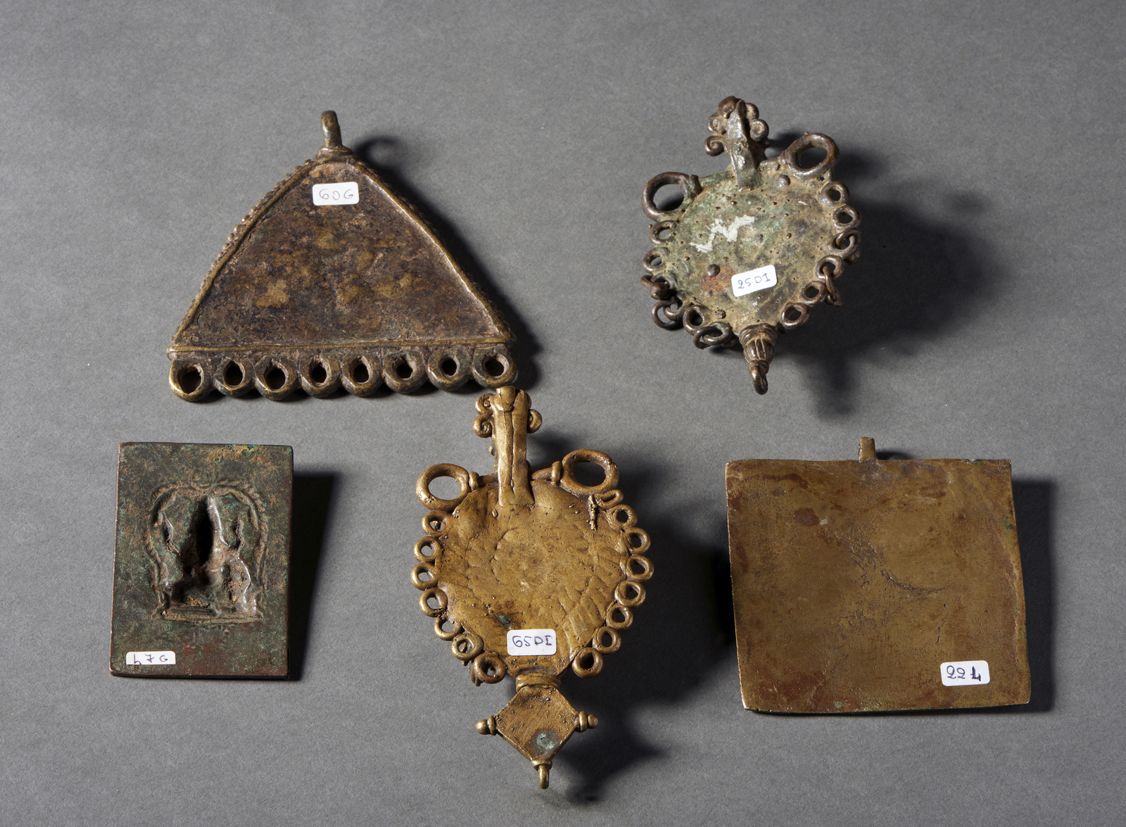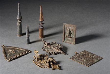 Arte Indiana - 5 placche votive e 3 bocchini per pipa ad acqua India, XIX-XX secolo .