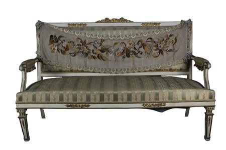 DIVANO in legno laccato e dorato, finemente intagliato Sicilia 1780-1820 h cm 105 x 156 x 57