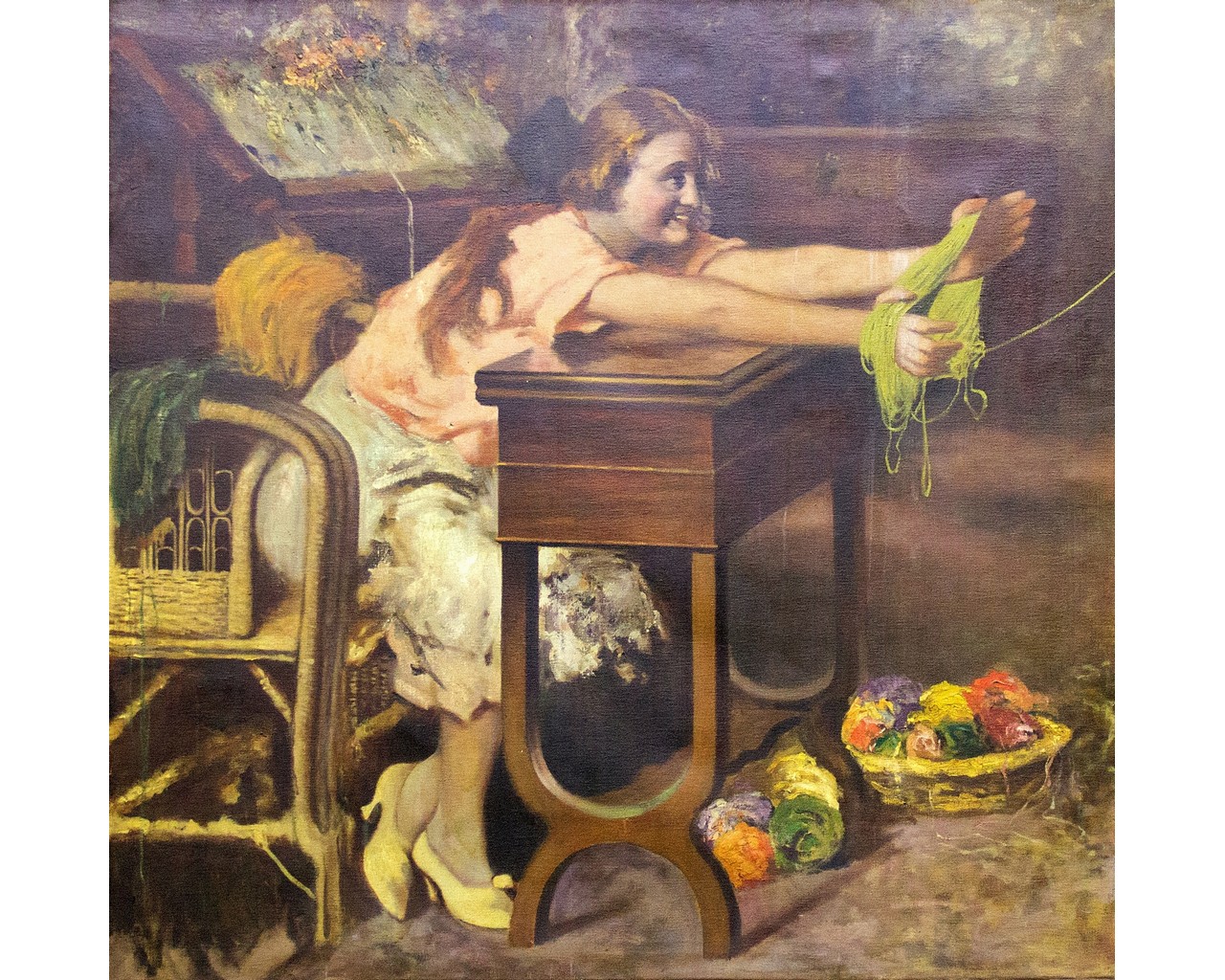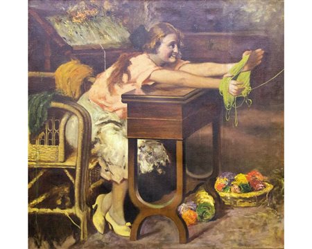 DIPINTO OLIO SU TELA Raffigurante scena d'interno Art nouveau fine 800 Francia h cm 137 x 140