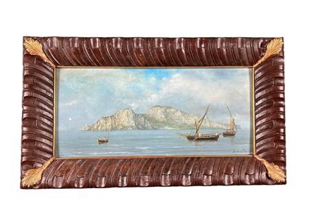 AMMIRATO olio su tavoletta raffigurante veduta marina di Capri h cm 23 x 50