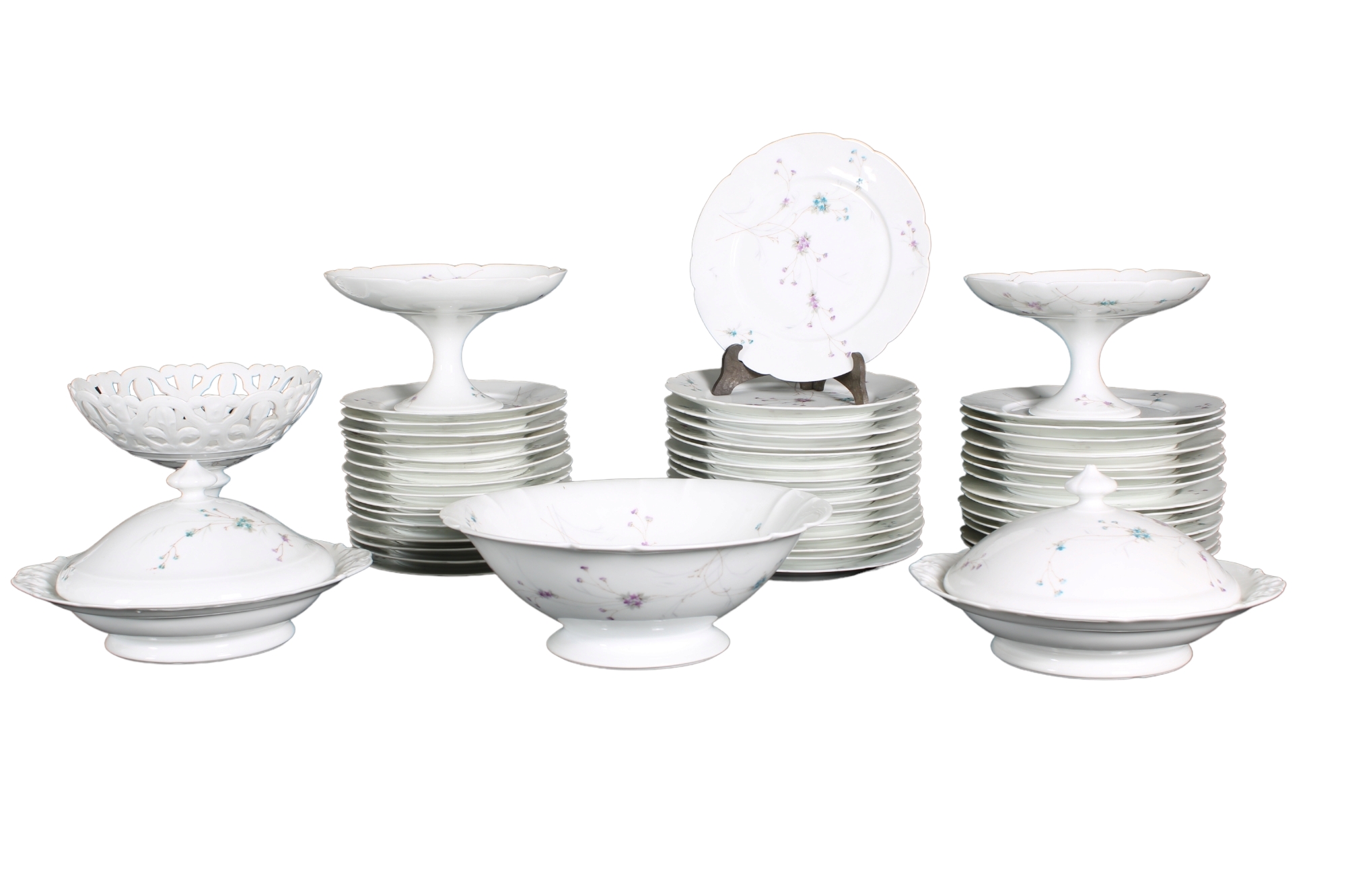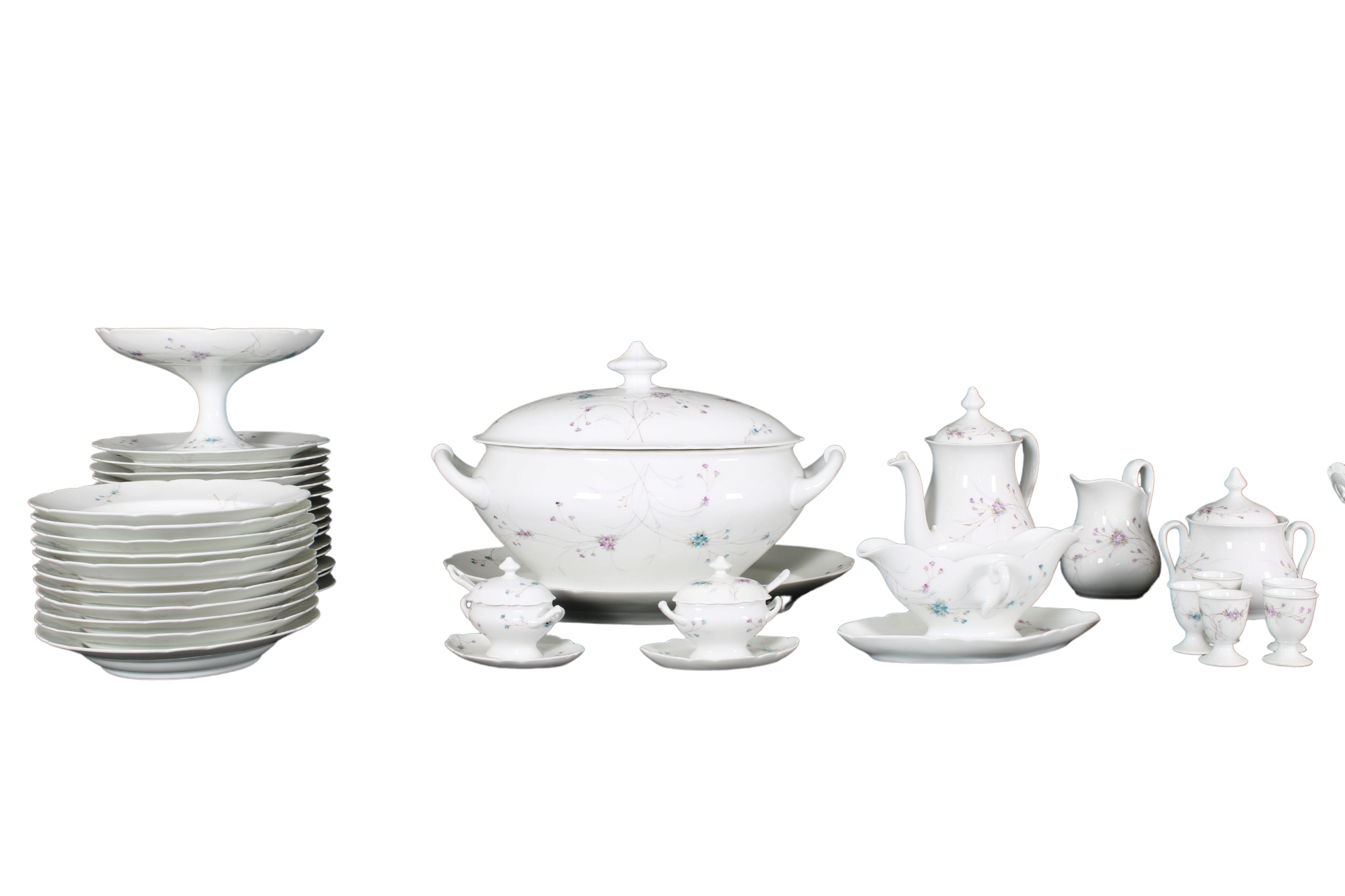 NUMEROSO SERVIZIO DI PIATTI marcato Ginori, decorato da ramage fioriti primi 900