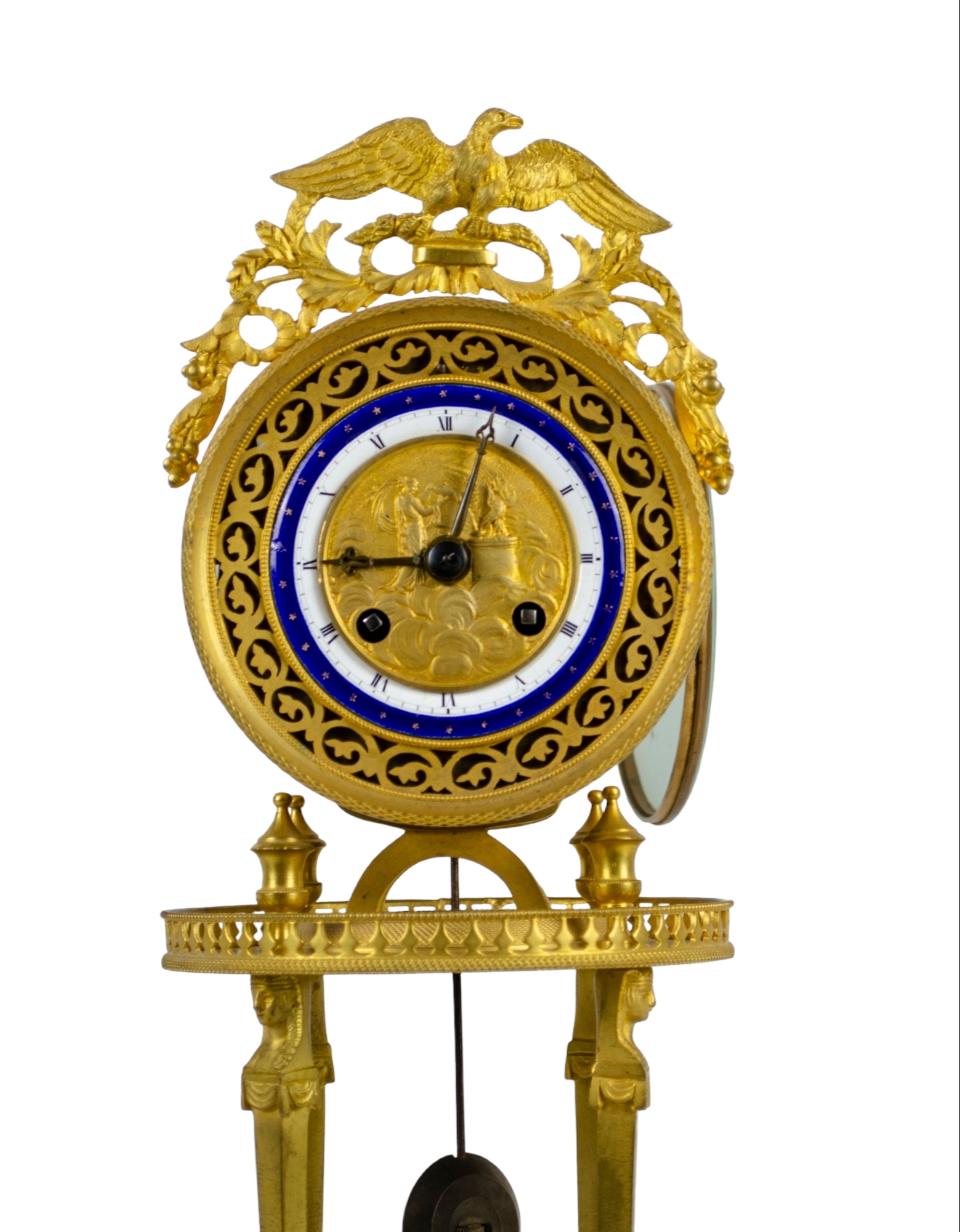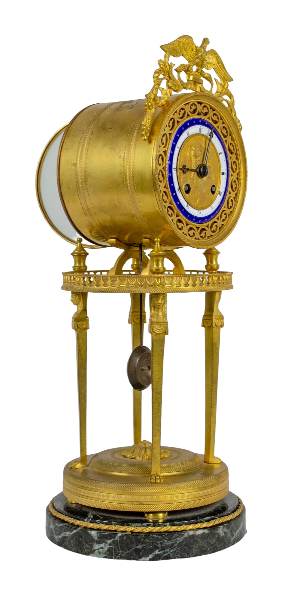 OROLOGIO A TEMPIETTO in bronzo finemente cesellato e dorato al mercurio base in marmo verde delle Alpi Francia XIX secolo h cm 42 x 17
