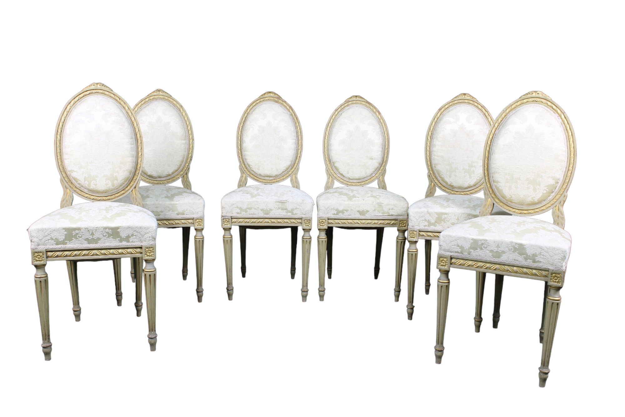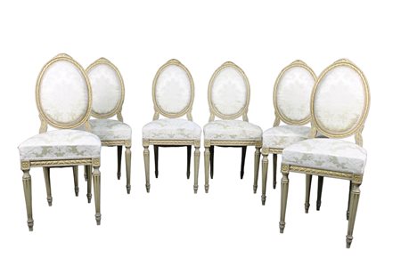 6 SEDIE in legno scolpito laccato e dorato Sicilia XIX secolo h cm 96 x 41 x 41
