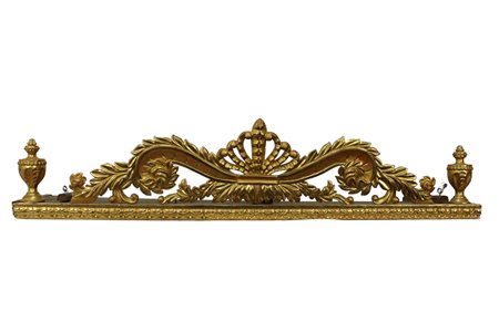 COPPIA DI ELEGANTI ZINEFFE in legno finemente intagliato e dorato Genova 1780-1810 h cm 31 x 144 x 42
