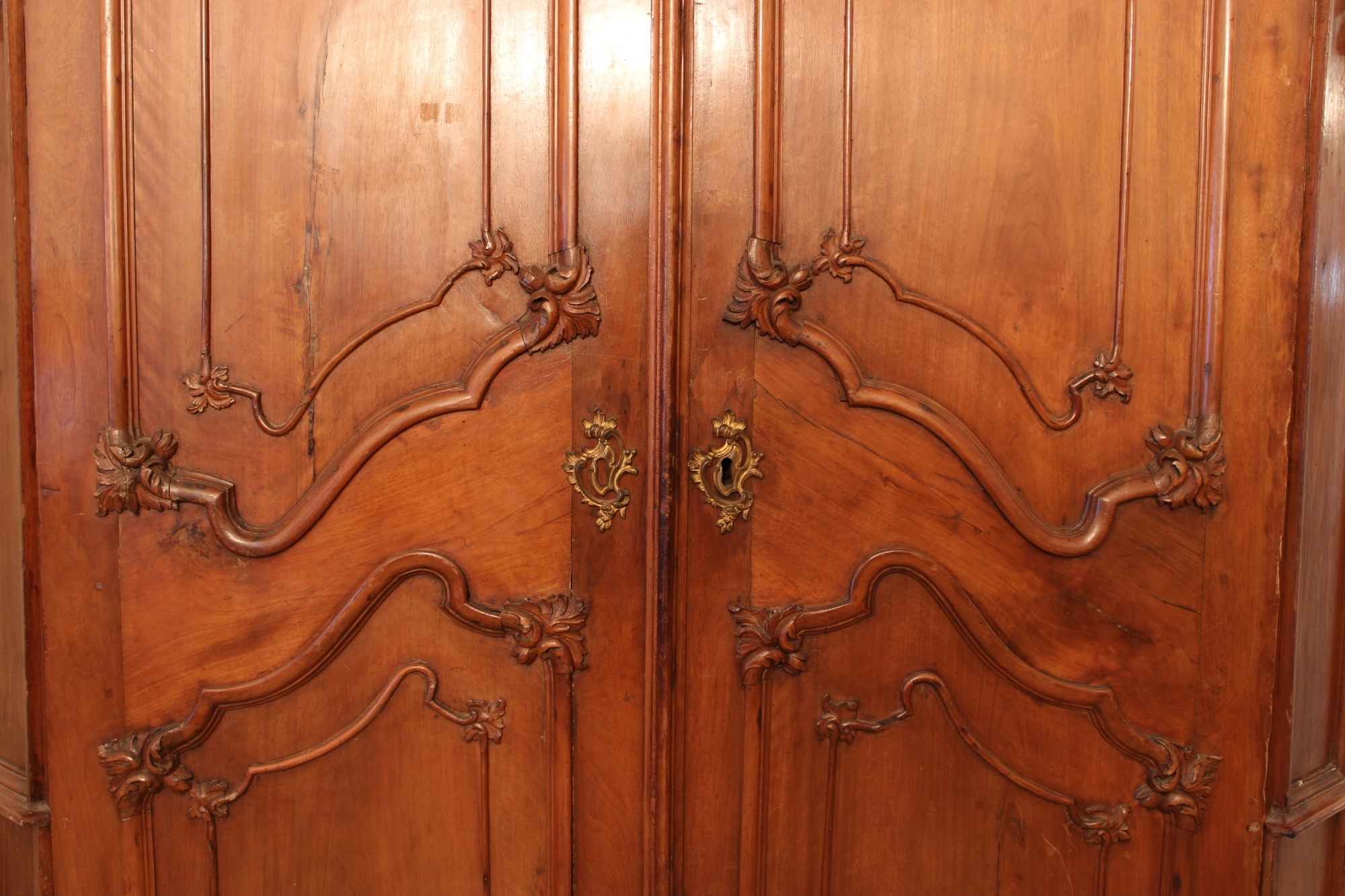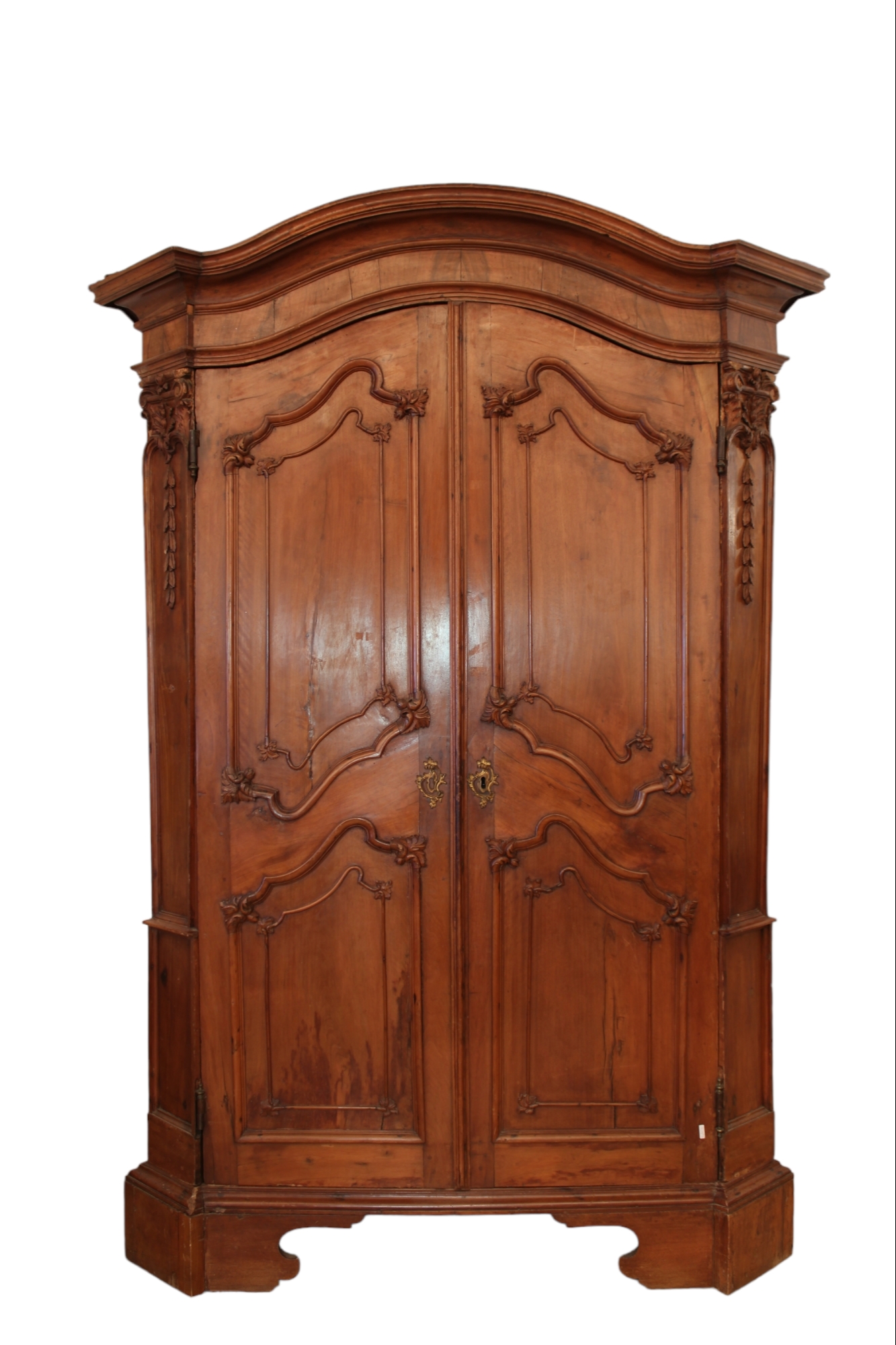 IMPORTANTE ARMADIO A 2 ANTE in legno di noce finemente scolpito Genova fine XVII secolo h cm 247 x 178 x 70