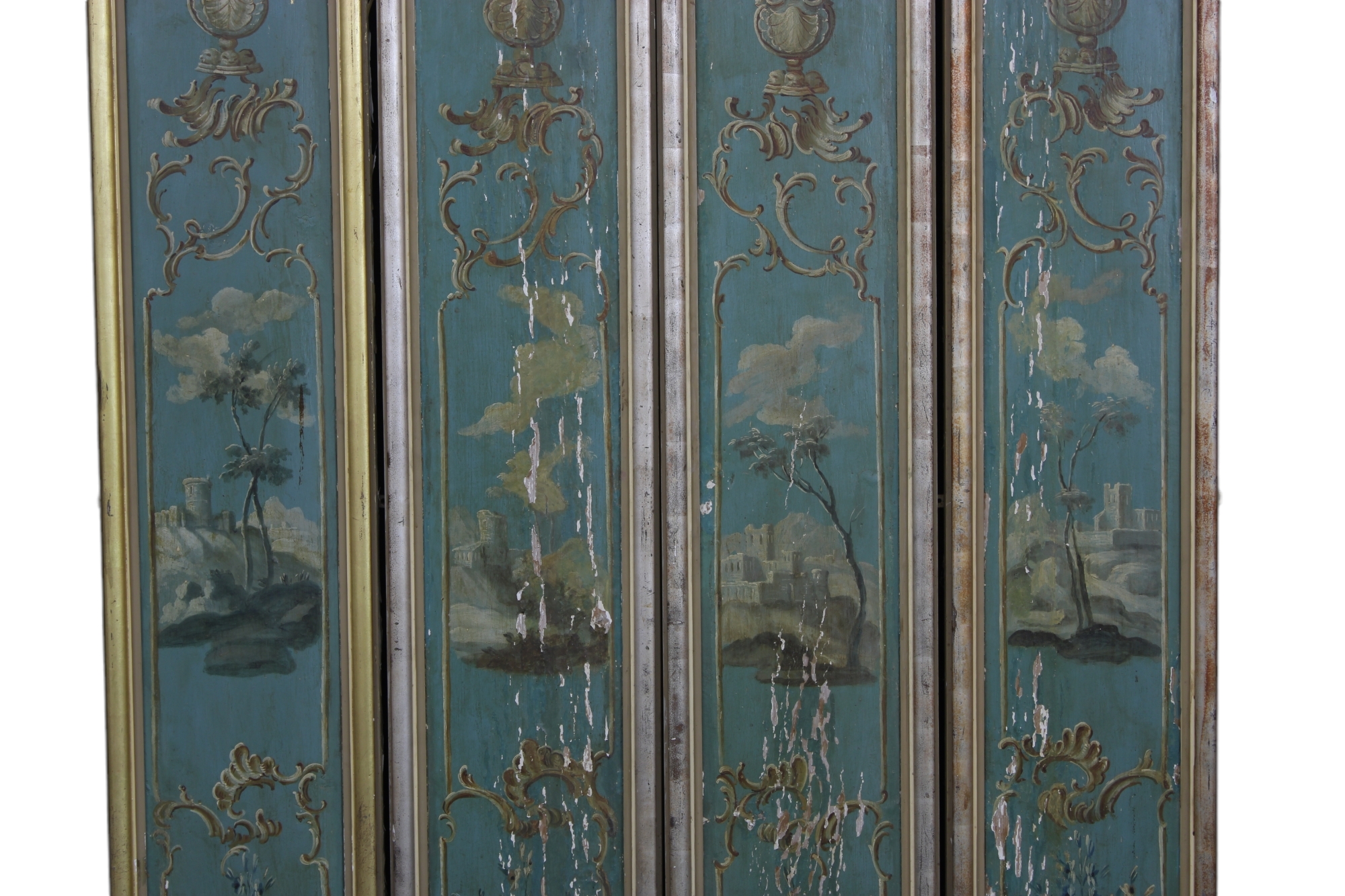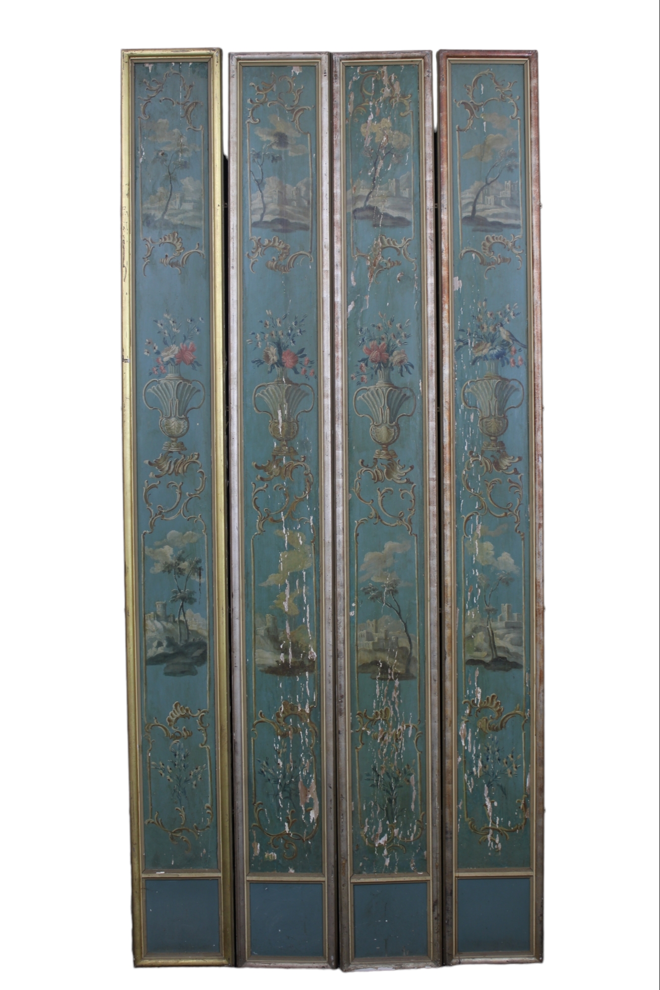 4 PANNELLI in legno laccato e dipinto raffigurante paesaggi a motivi floreali dentro cornice non coeva Sicilia XVIII secolo h cm 286 x 33