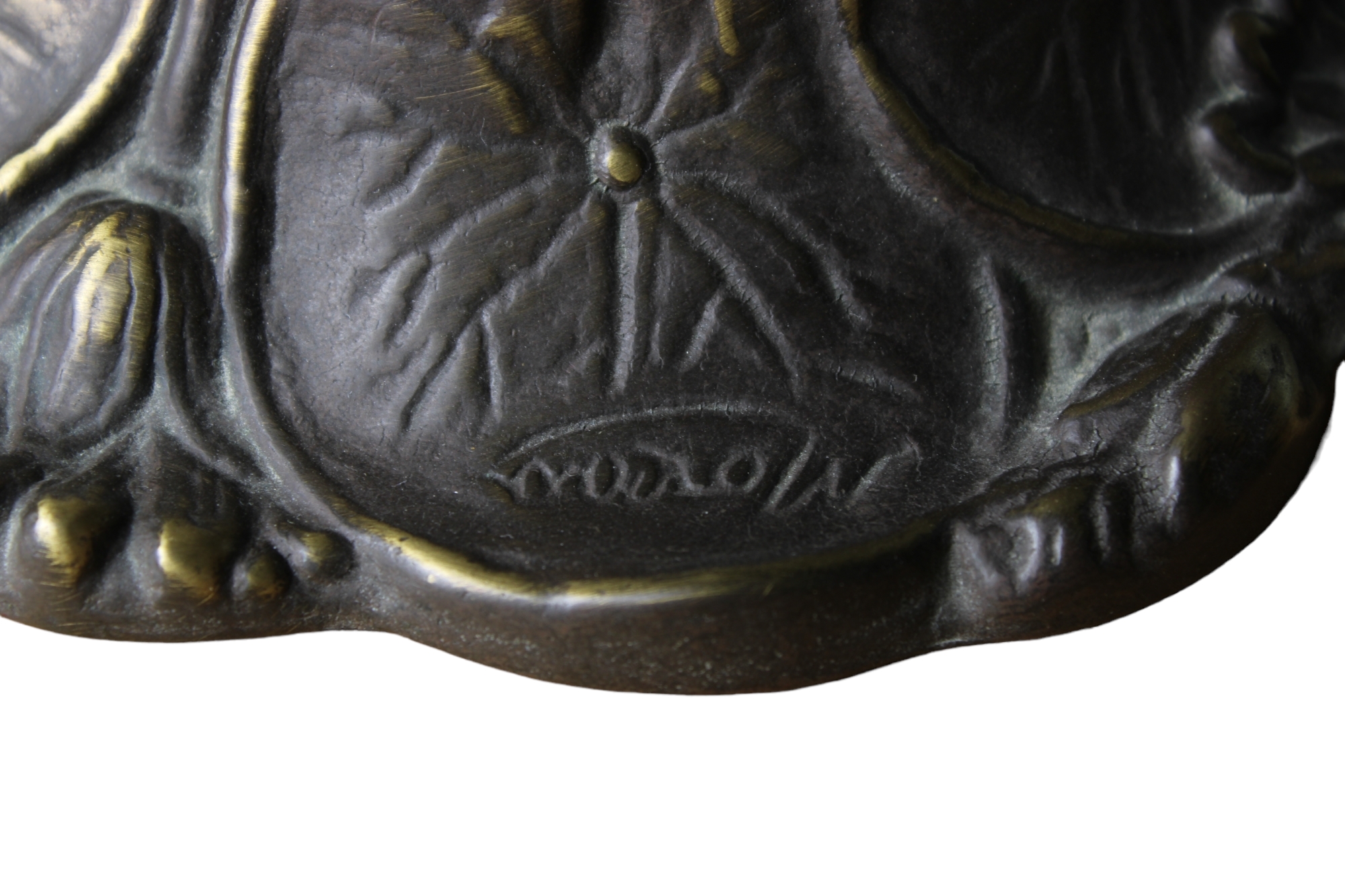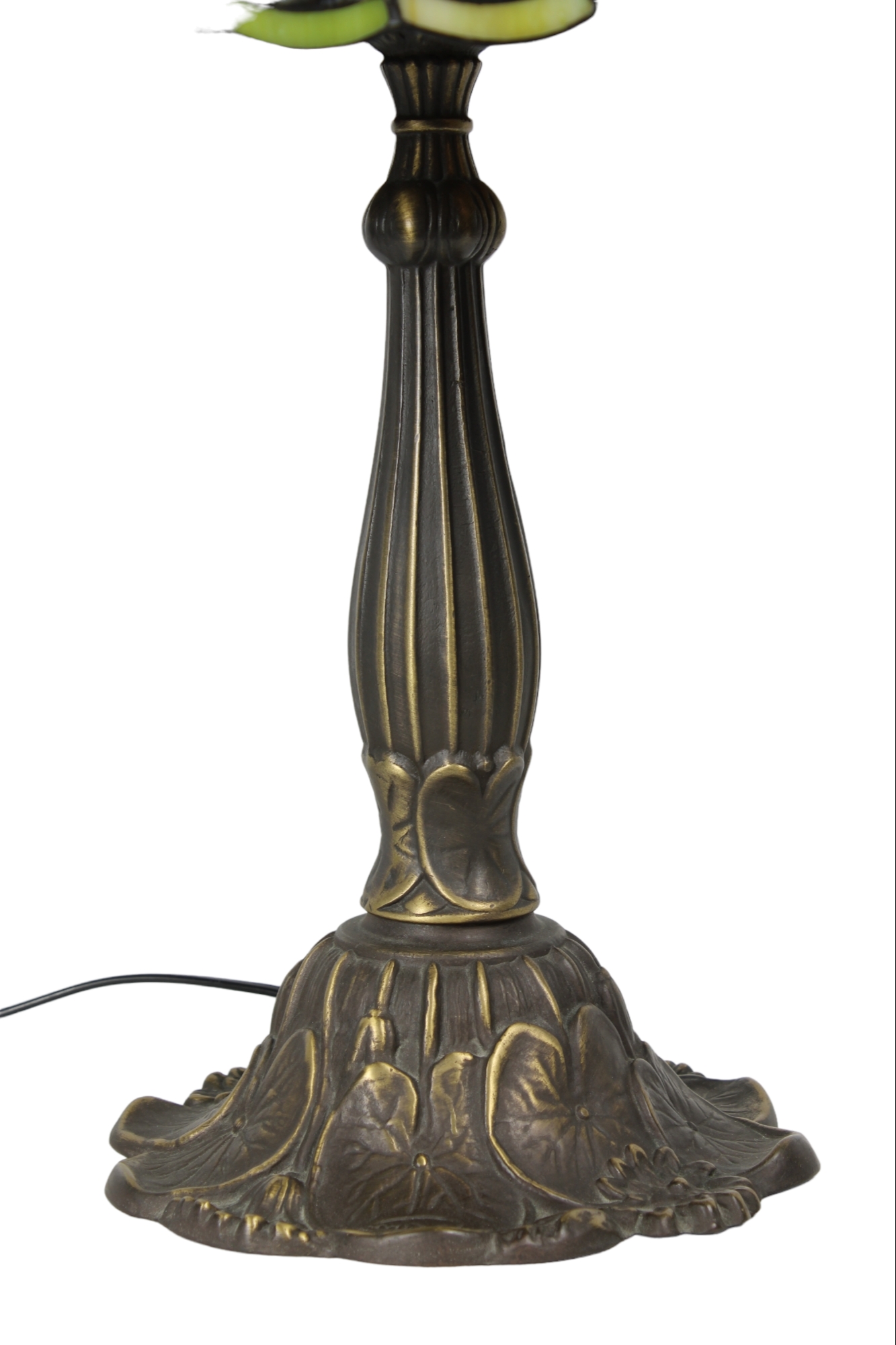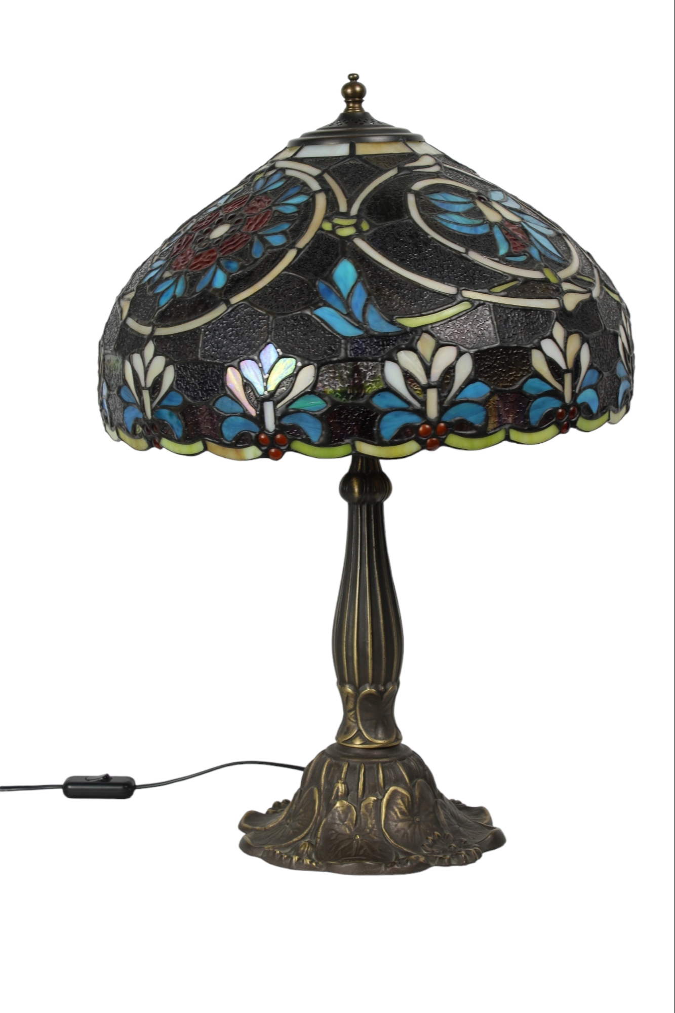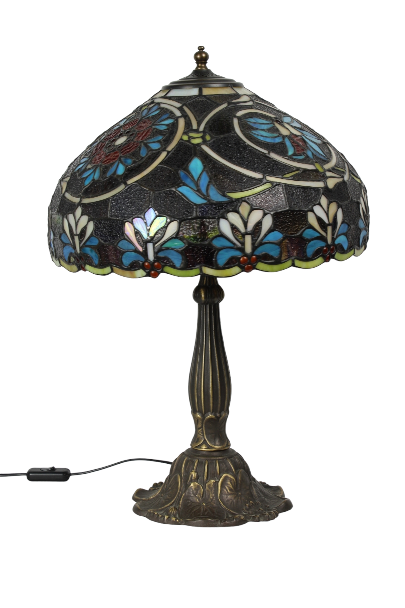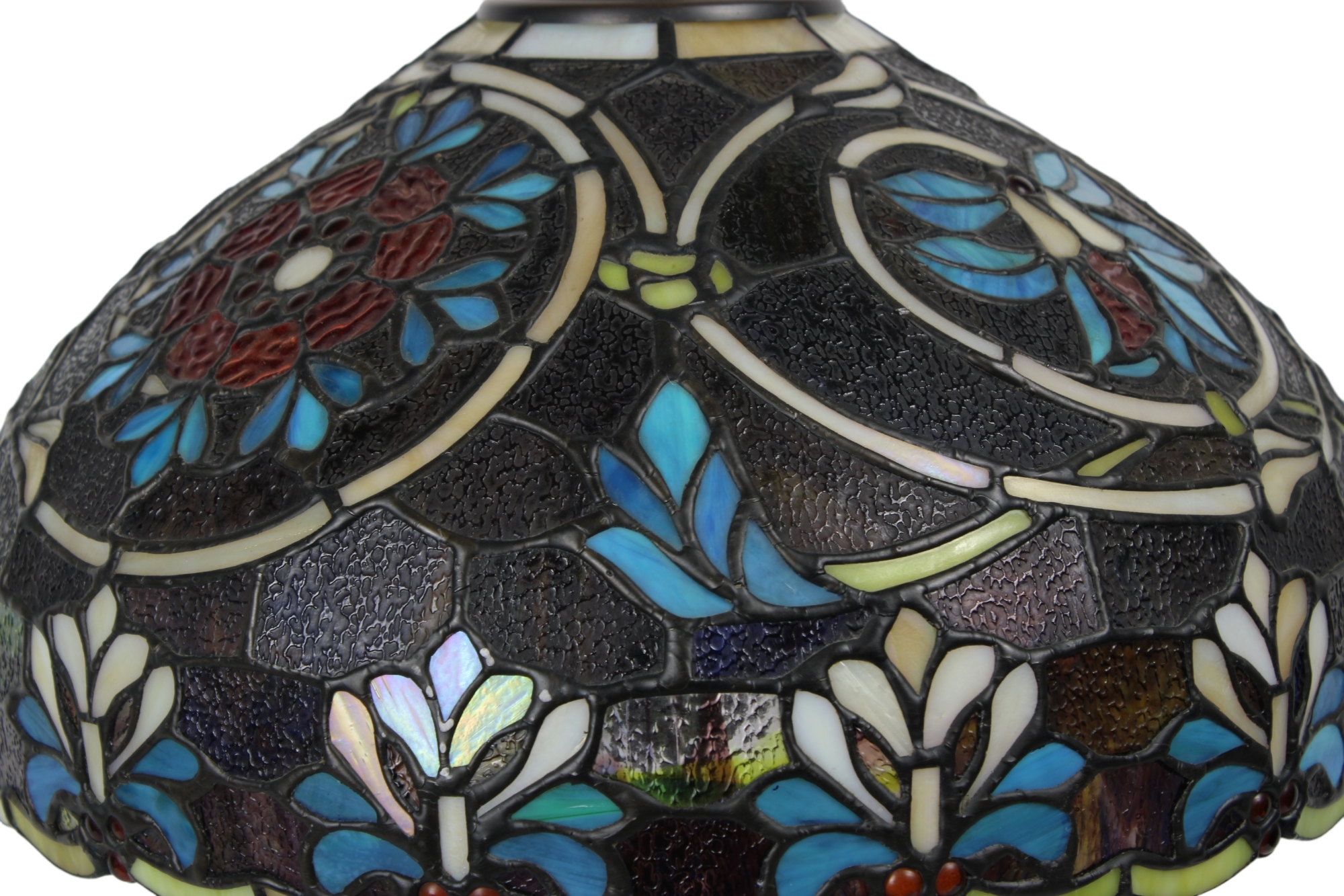 LAMPADA in bronzo brunito con cupola in vetro colorato in stile Tiffany di gusto Liberty XX secolo h cm 57 x 39