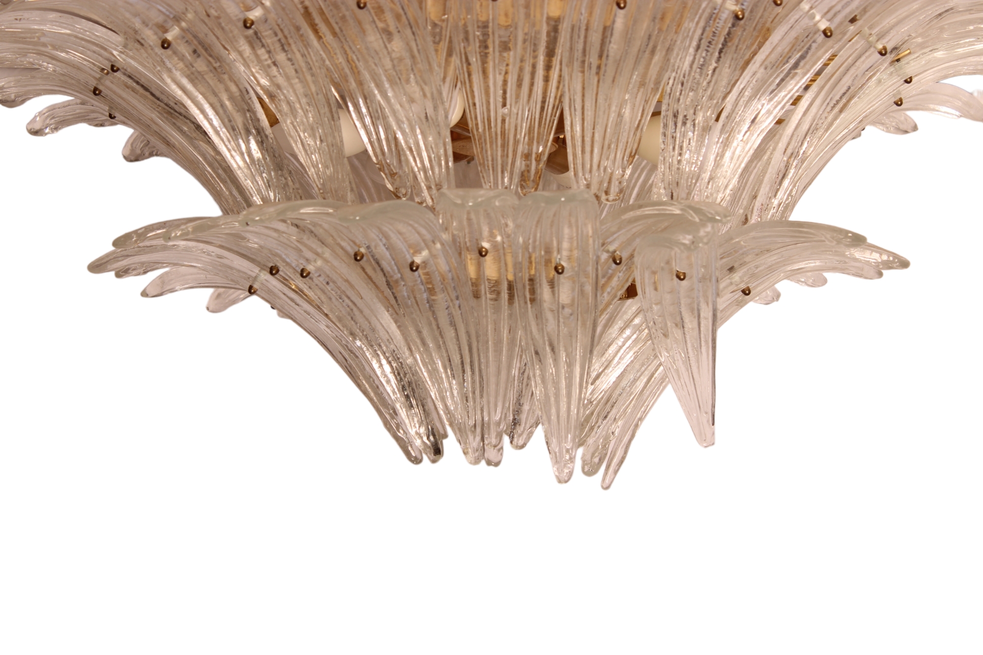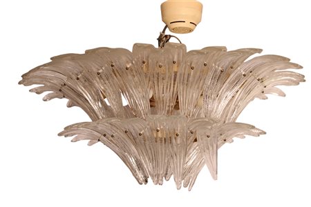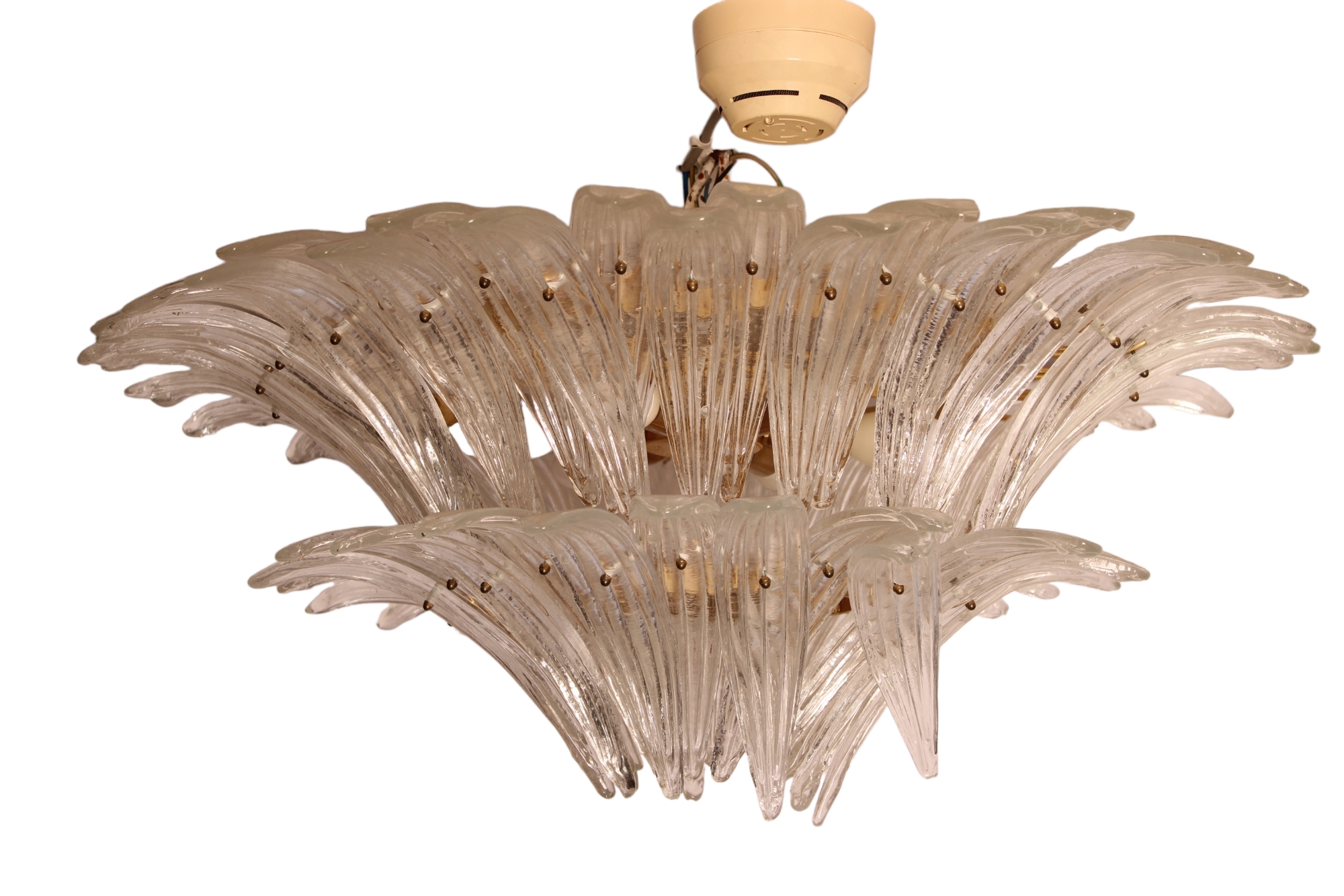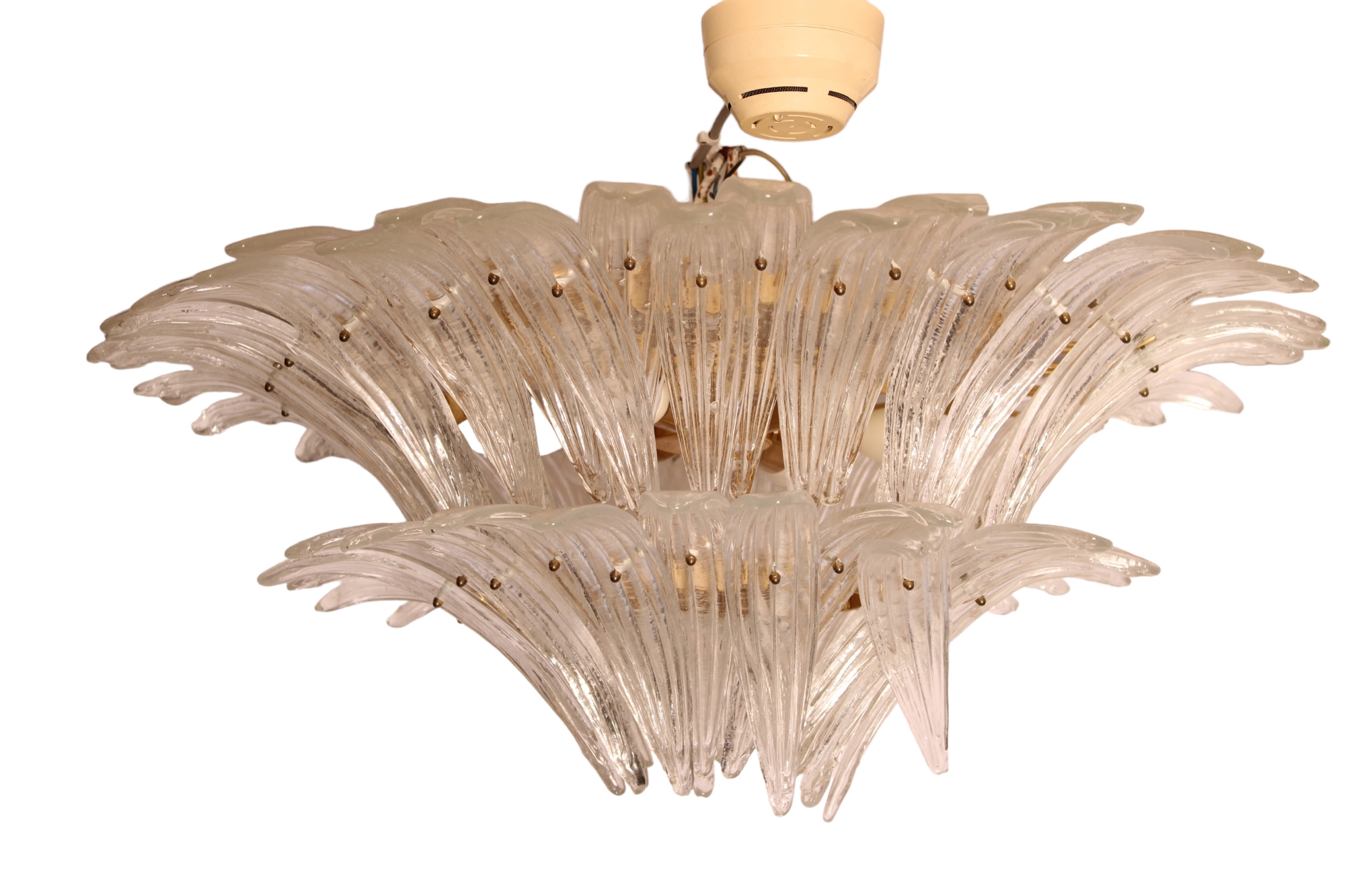 LAMPADARIO IN VETRO DI MURANO Modello palmette produzione Barovier e Toso a 2 piani , anni '70 Italia h cm 37 x 86