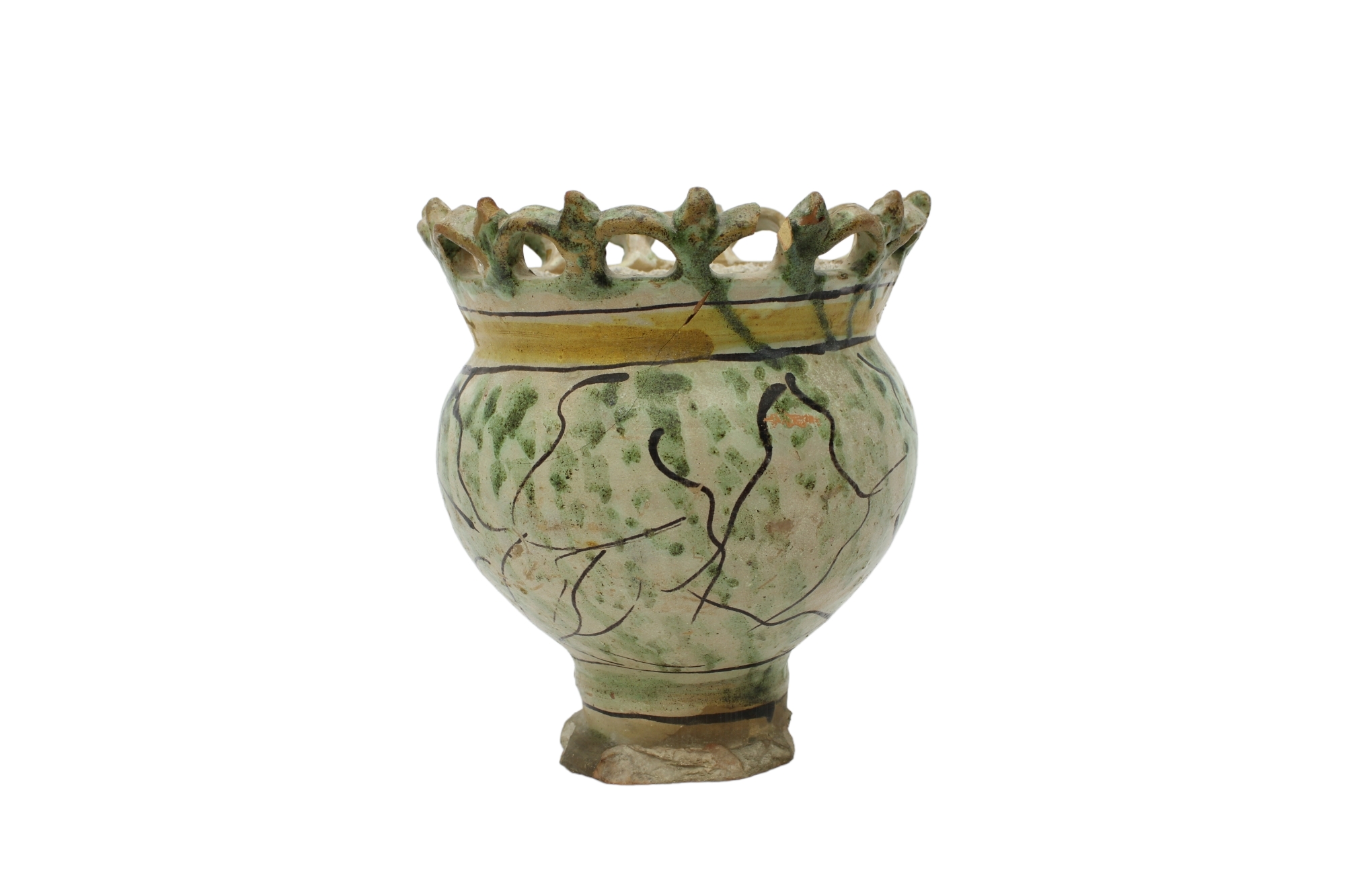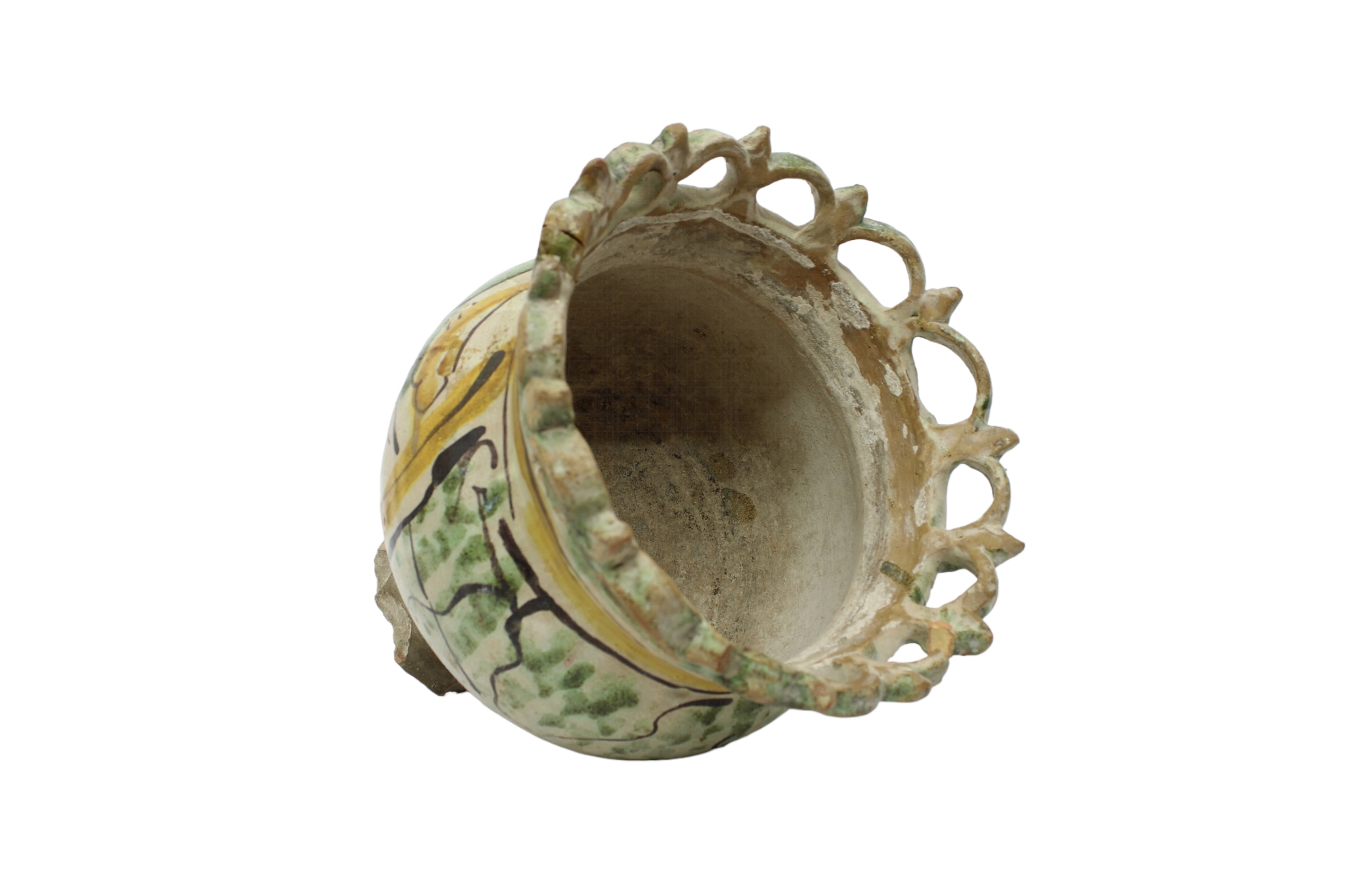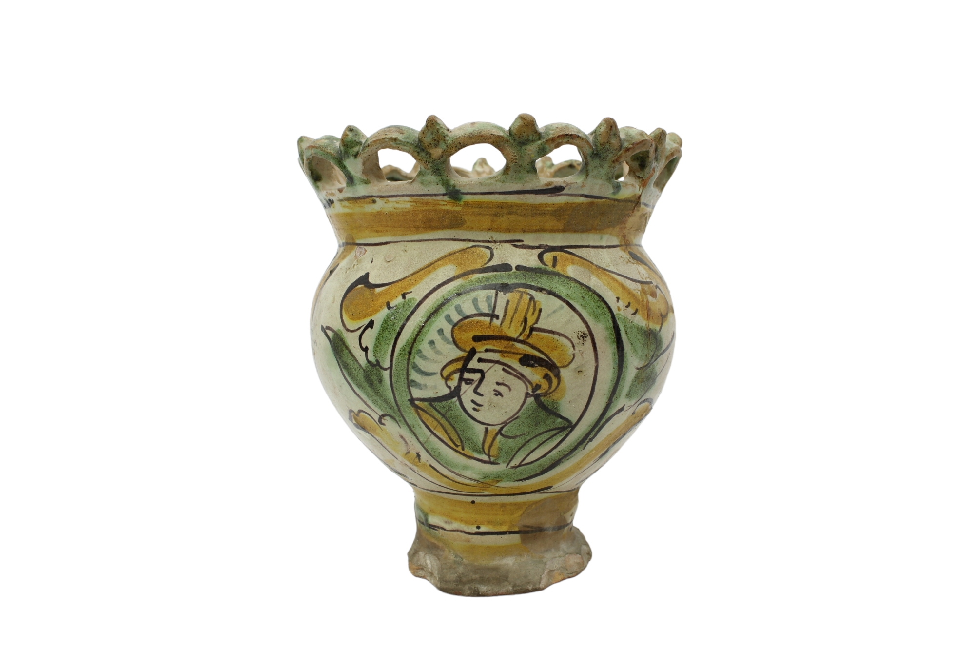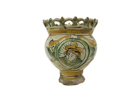 VASO in maiolica popolare, difetti e rotture Burgio fine XVIII- pirmi XIX secolo h cm 26 x Ø 24