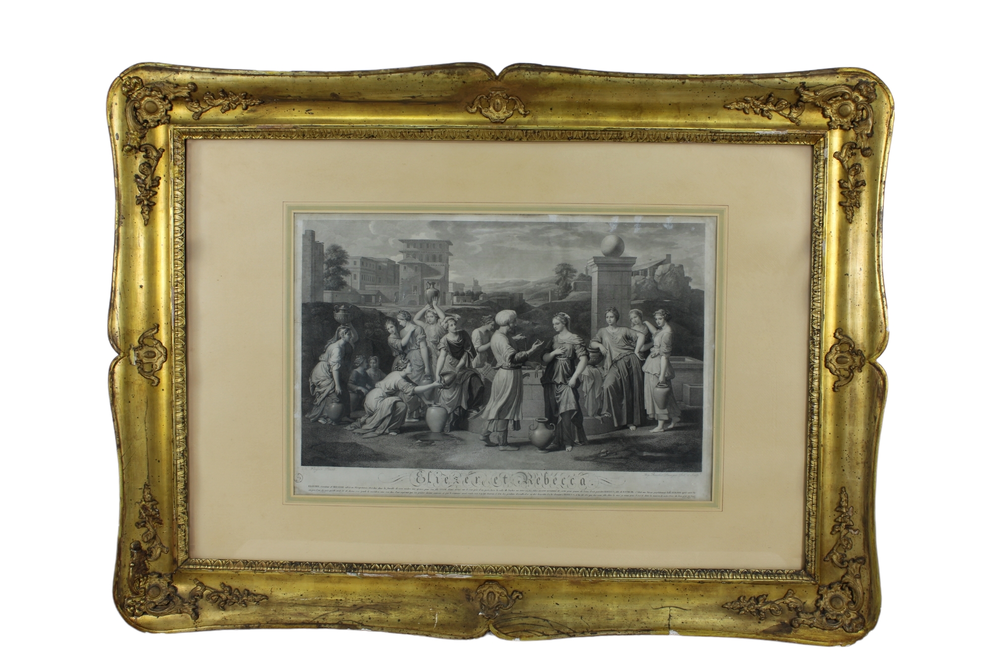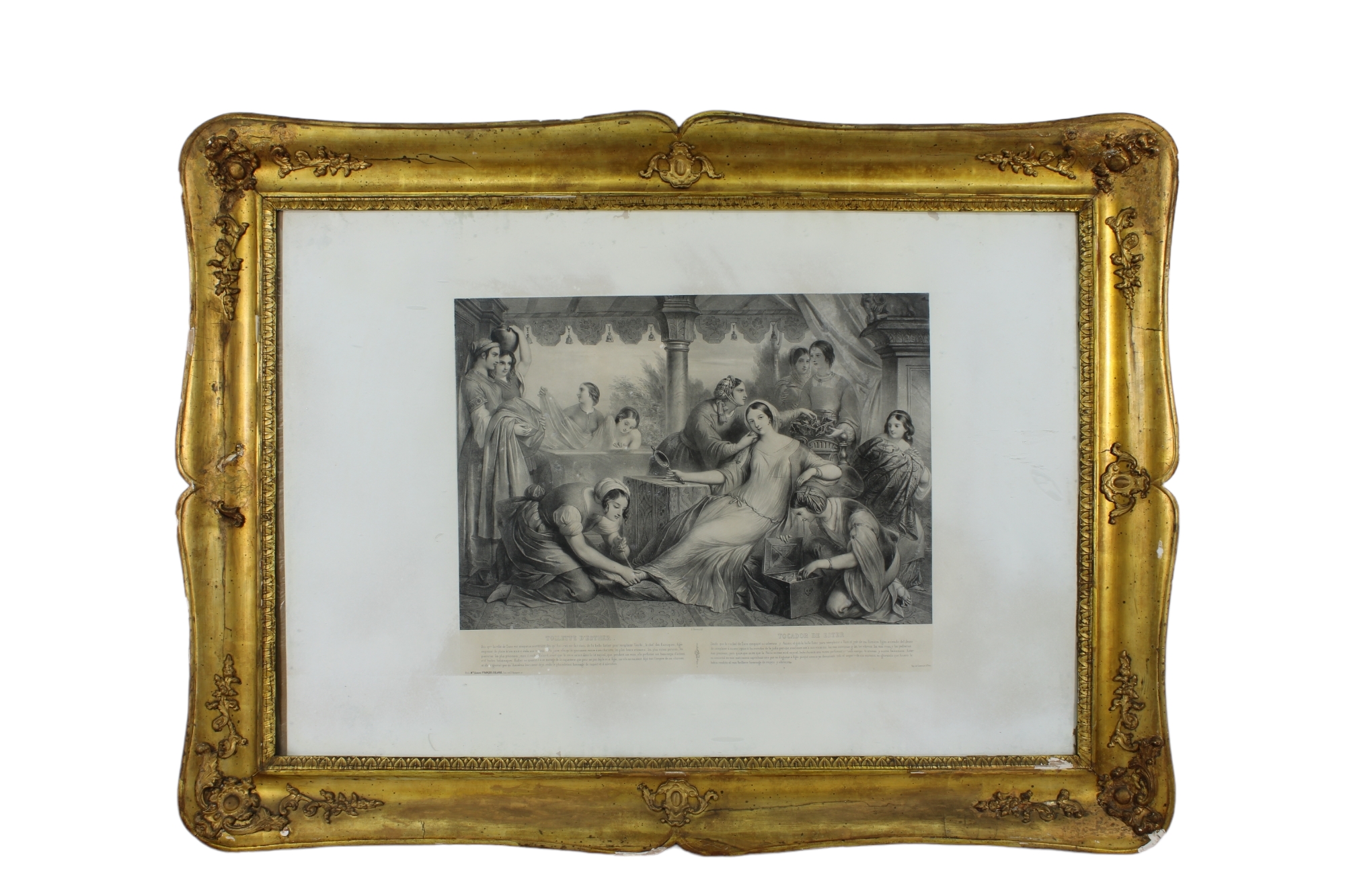 COPPIA DI ELEGANTI CORNICI A GUANTIERA in legno e pastiglia dorata d'argento e mecca contenente stampe dentro passepartout , difetti e usure del tempo Sicilia XIX secolo h cm 46 x 68 / cornice h cm 92,5 x 124