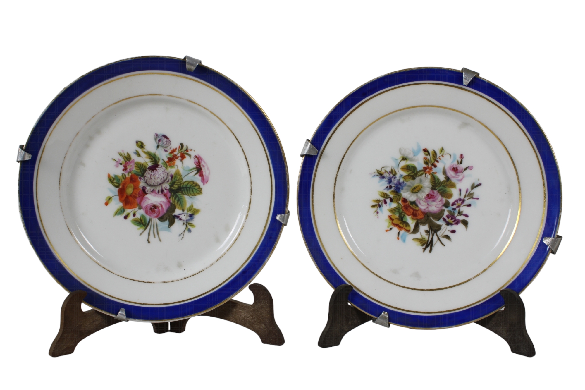 GRUPPO DI 6 PIATTI in porcellana dipinta a motivi floreali Francia XIX secolo Ø cm 21