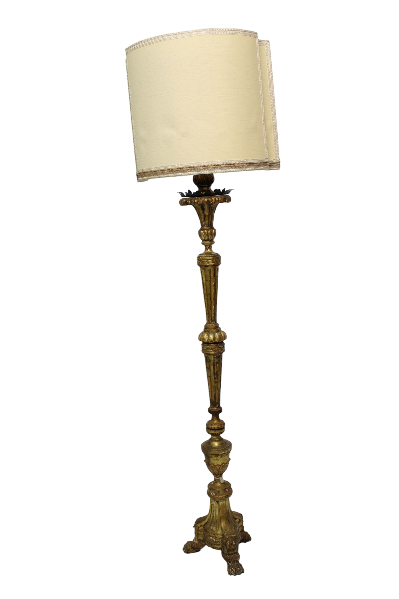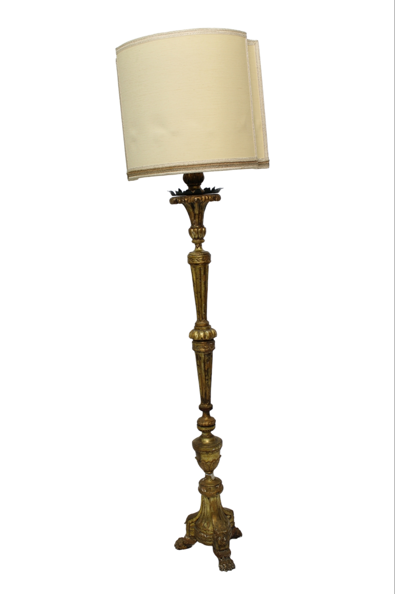 TORCERE MONOCERA in legno scolpito dorato montato a lume Sicilia XVIII secolo h cm 162,5 x 45