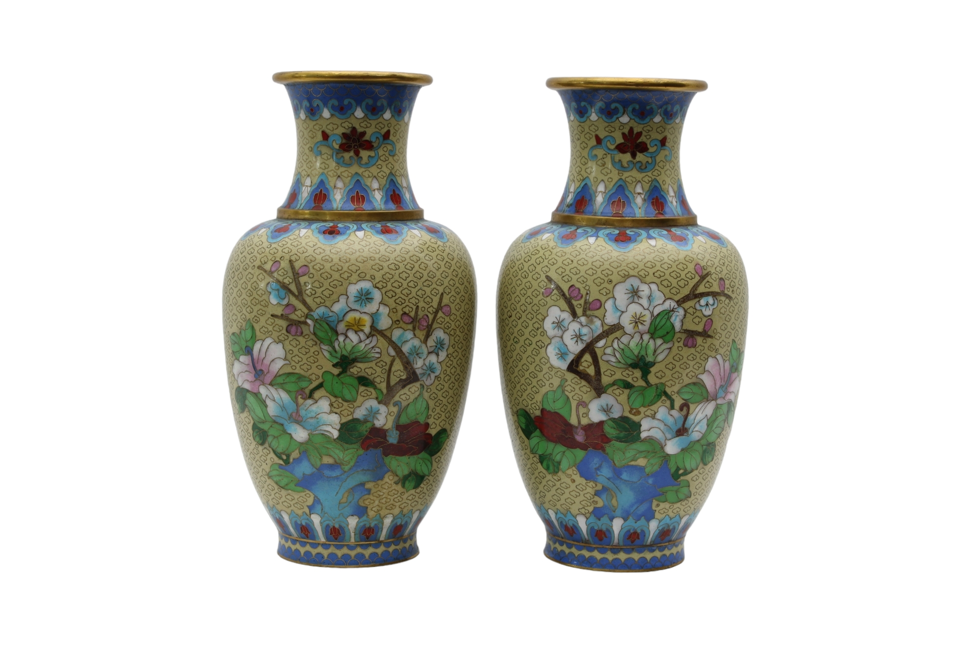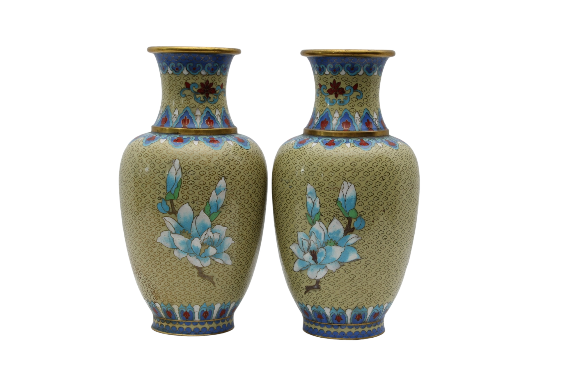 COPPIA VASI cloisonne manifattura orientale XX secolo h cm 31 x 15