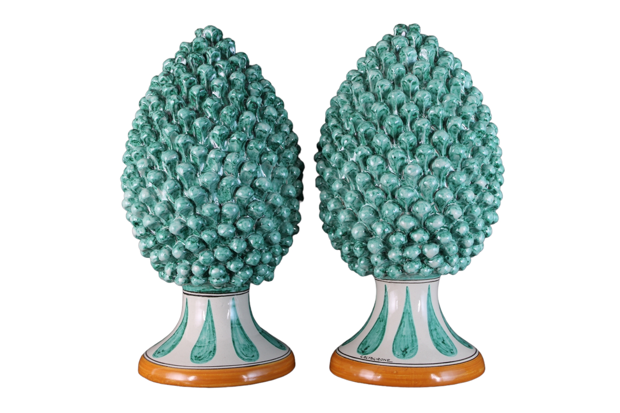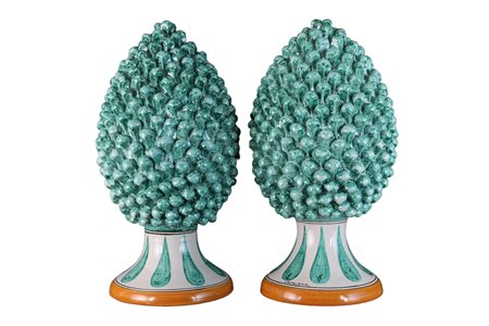 COPPIA PIGNE in terracotta maiolicata XX secolo Caltagirone h cm 50 x 26