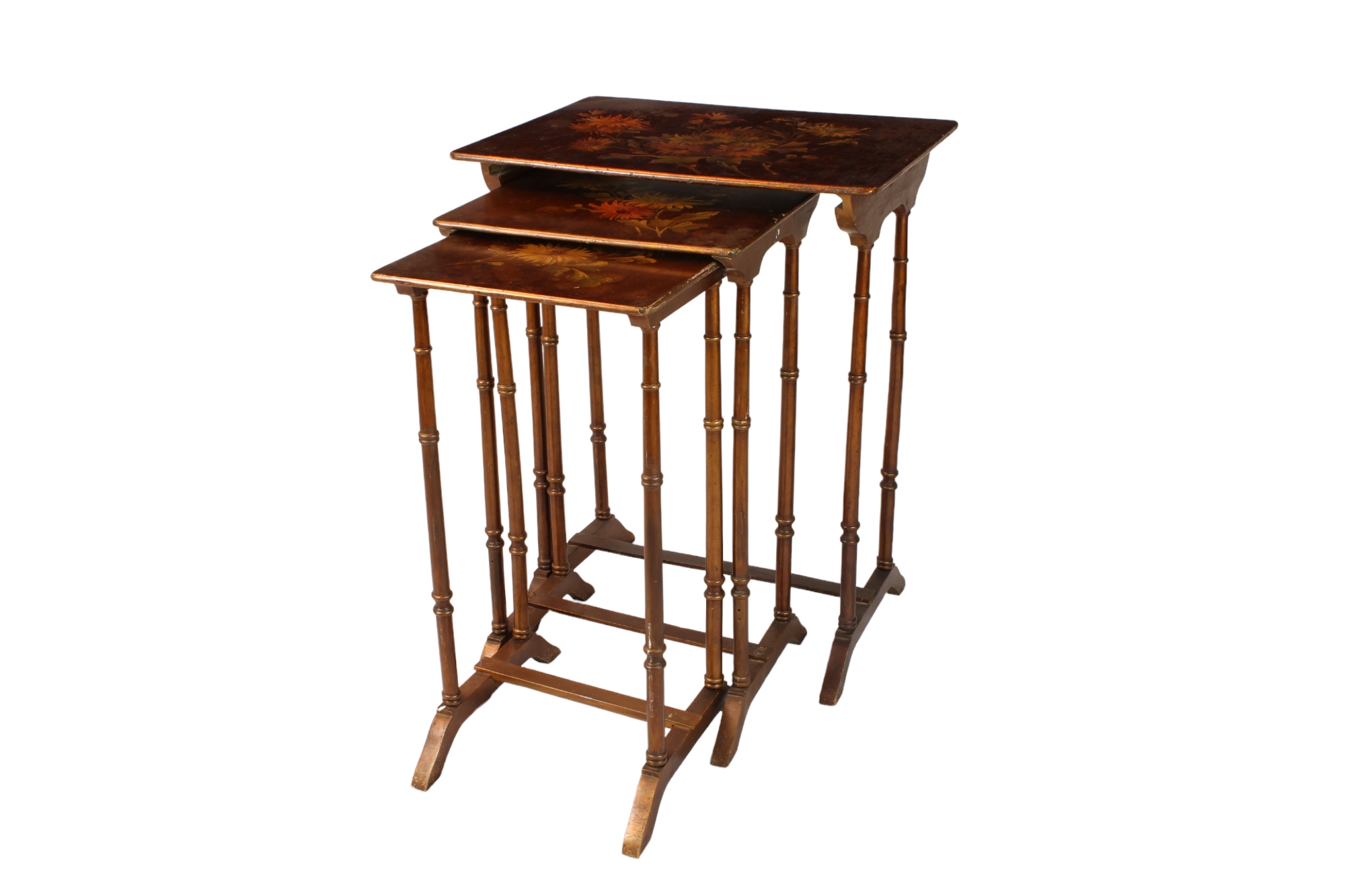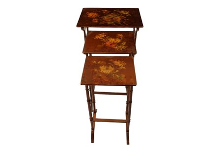 in legno laccato e dipinto a motivi floreali Inghilterra XIX secolo h cm 71 x 55,5 x 40 / h cm 66 x 38 x 32 / h cm 64 x 33 x 29