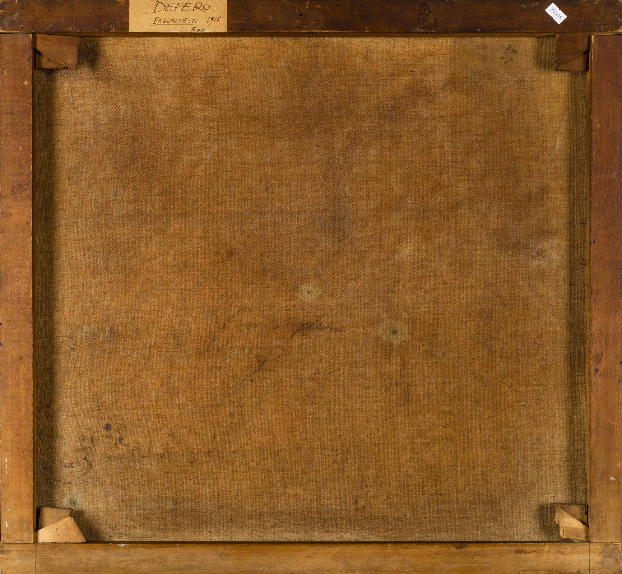 Sul retro, scritta autografa: “DEPERO / PAGLIACCETTI 1918 / L. 500”