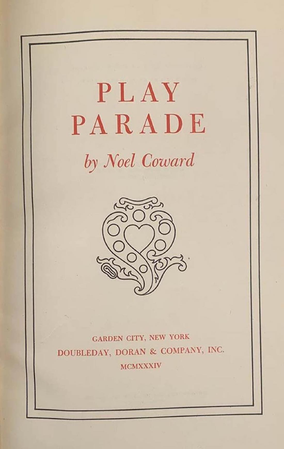 NOEL COWARD Play Parade. Garden City, New York 1934