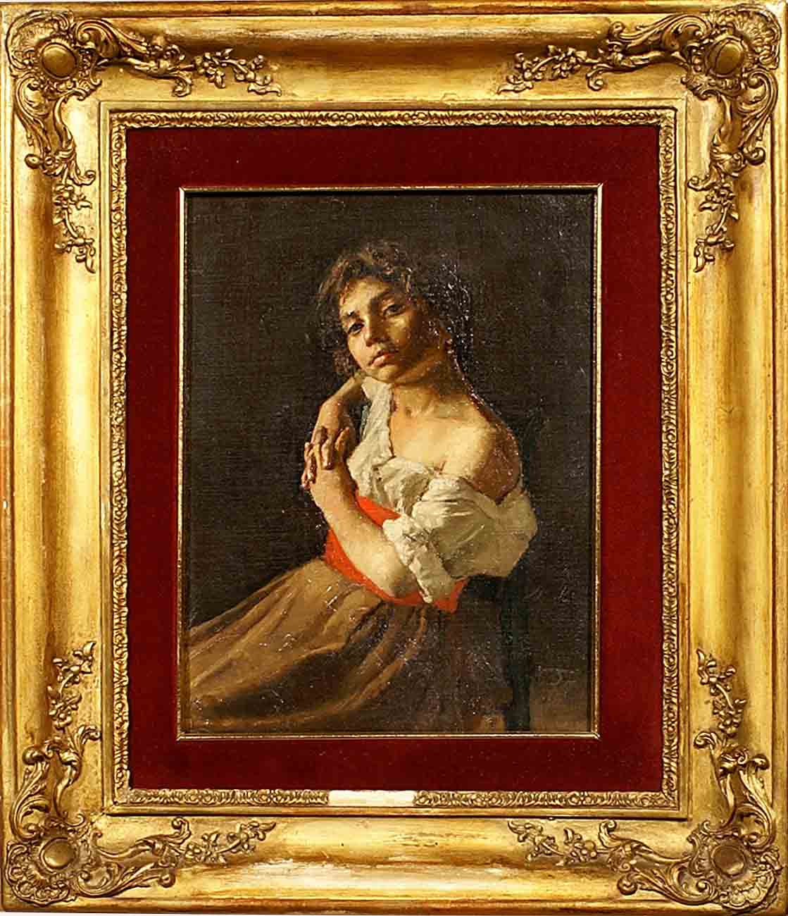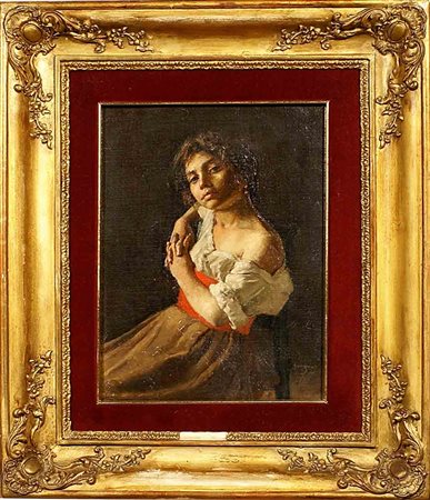 Artista romano primi anni del XIX secolo, "Ritratto di popolana", olio su tela. cm. 30x22.