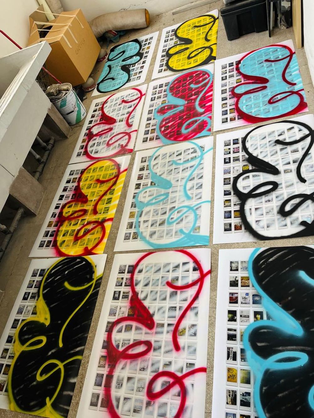 Stampa a solvente su carta fotografica patinata opaca 200g con Throw up realizzato a mano con spray