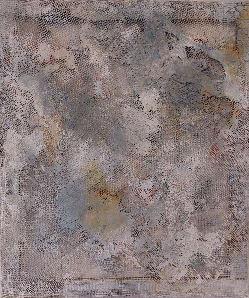 Tecnica mista su rete intelaiata su supporto in legno