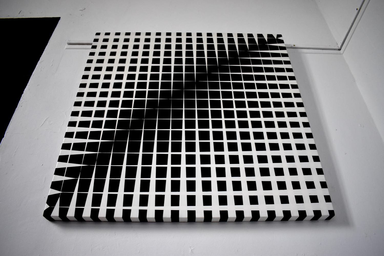 MOTOREFISICO è un duo composto da Lorenzo Pagliara e Gianmaria Zonfrillo, entrambi architetti e designer romani. Lavorano in vari campi tra cui decorazioni d’interni, installazioni tridimensionali, allestimento e video art. Dal 2015 decorano pareti e pavimentazioni per case, scuole, uffici, hotel e locali. Sono molto rare le opere di questo collettivo non site-specific come questa.