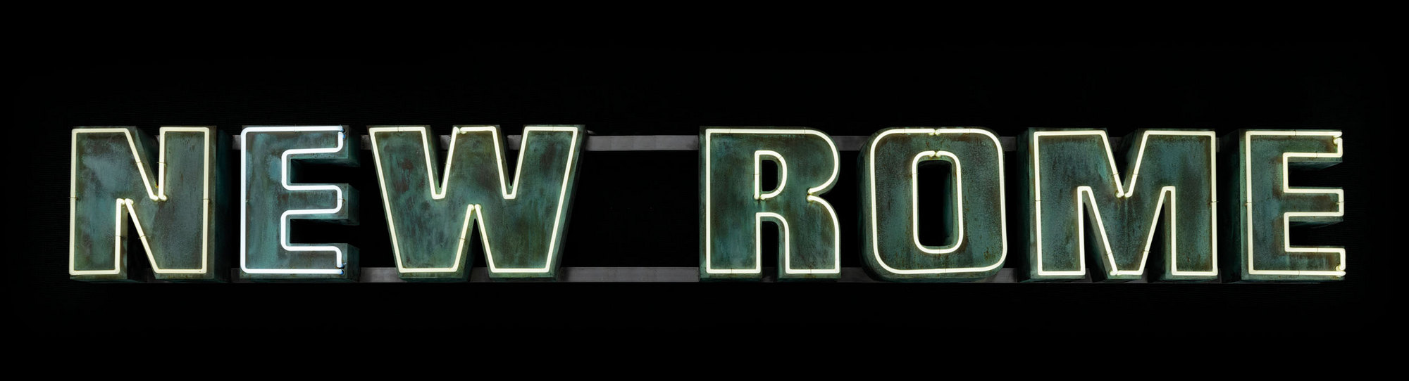 Lettere in rame ossidato, neon, cm 40 x 330 x 22