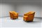 Coppia di poltrone imbottitura rivestita in tessuto e piedi in legno.