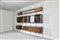 Sistema coordinato di elementi componibili in legno con guide a parete in alluminio. Prod. Tecno 1951, cm 300x353x48