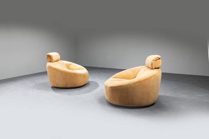 Coppia di poltrone con testiera regolabile, rivestimento in tessuto.