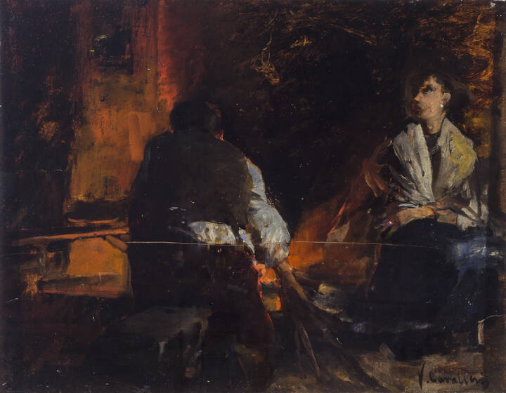 VITTORIO CAVALLERI<BR>Torino 1860 - 1938<BR>"Attizzando il fuoco"