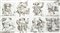 Otto chine su carta, ognuma cm 20x22 circa, montate in unica cornice (complessivi cm 43x77 circa)