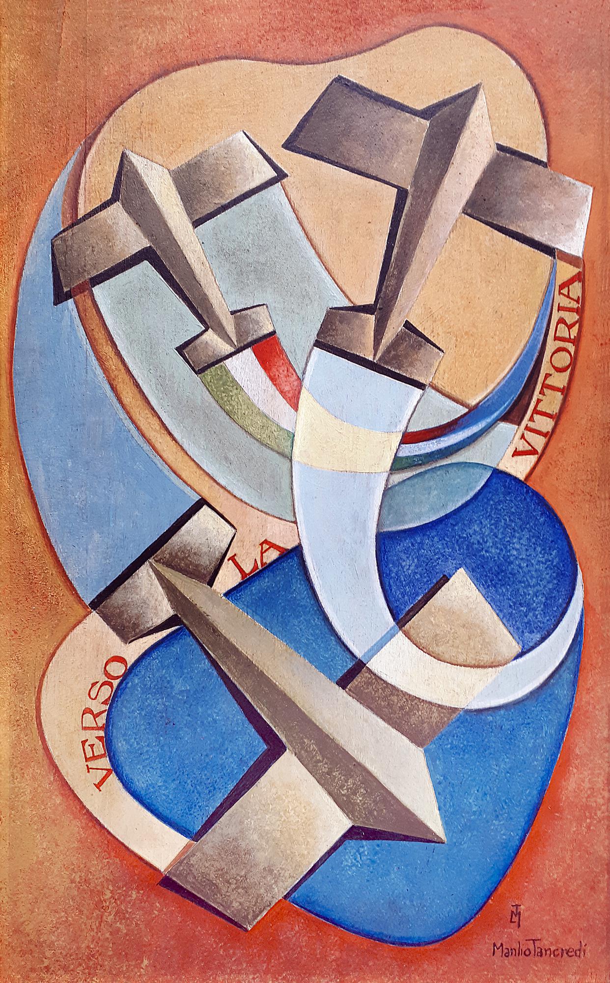 Manlio Tancredi VERSO LA VITTORIA olio su tavola, cm 31,5x20 firma, sigla e...