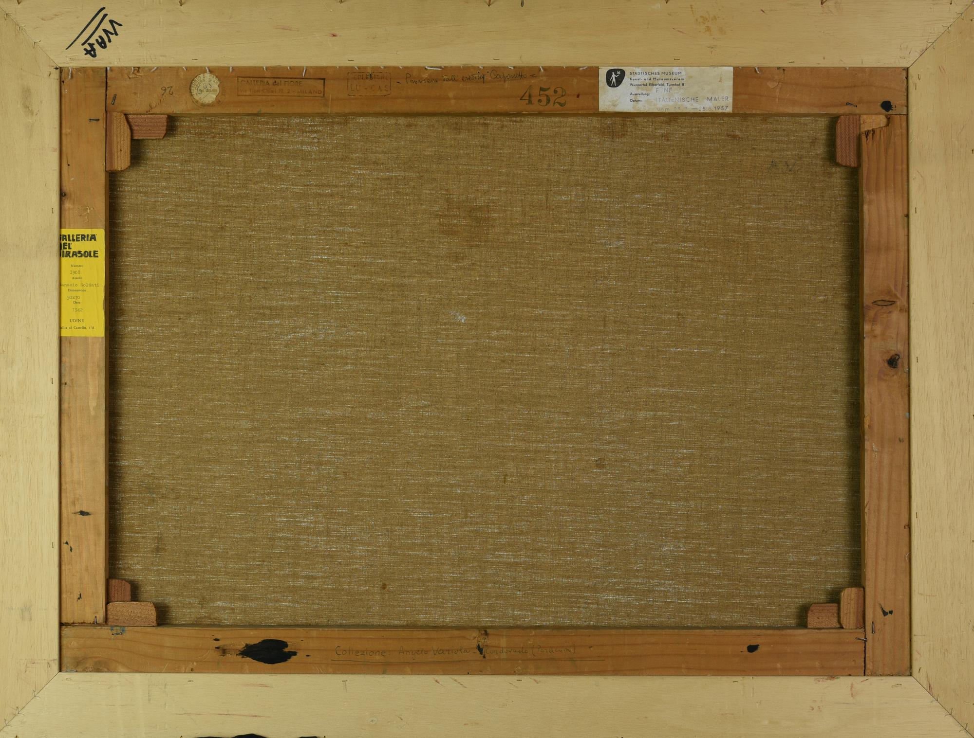 sul retro: timbro Galleria Barbaroux, Milano, timbro Galleria del Fiore, Milano, timbro Galleria del Girasole, Udine ed etichetta Stadtisches Museum, Wuppertal-Elberfeld