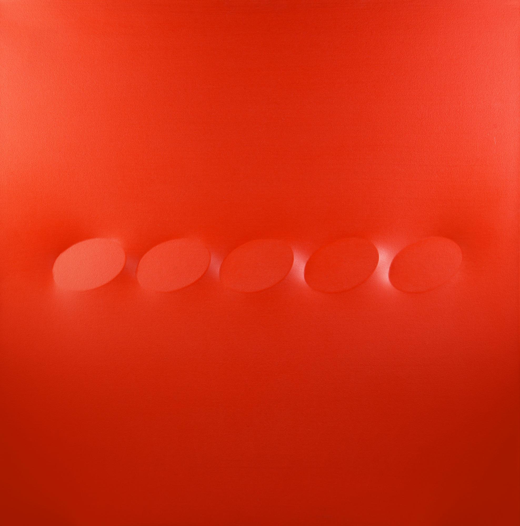 Turi Simeti (1929 - 2021) CINQUE OVALI ROSSI, 2008 acrilico su tela sagomata,...