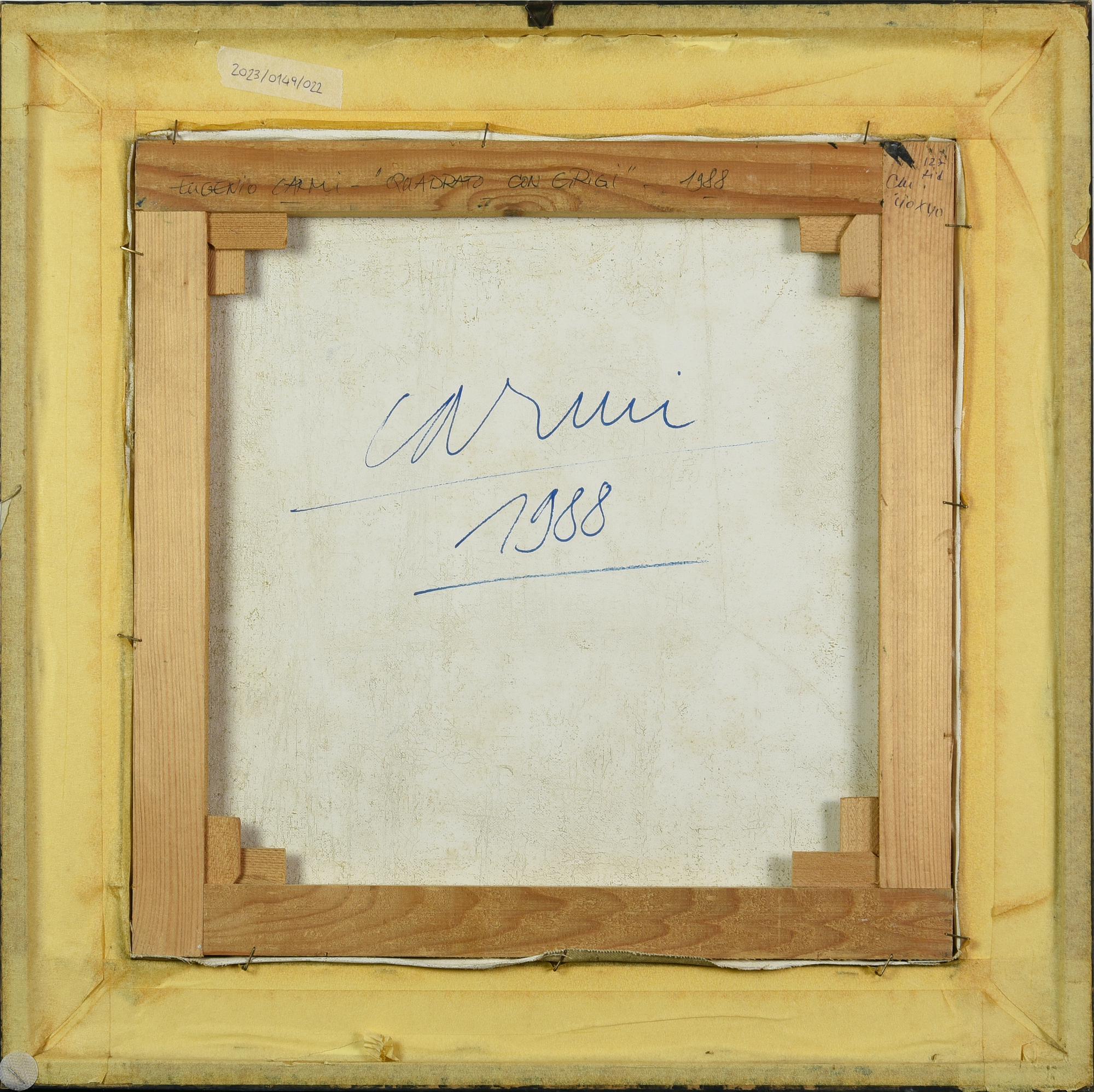 Eugenio Carmi (1920 - 2016) QUADRATO CON GRIGI, 1988 olio su tela, cm 40x40...