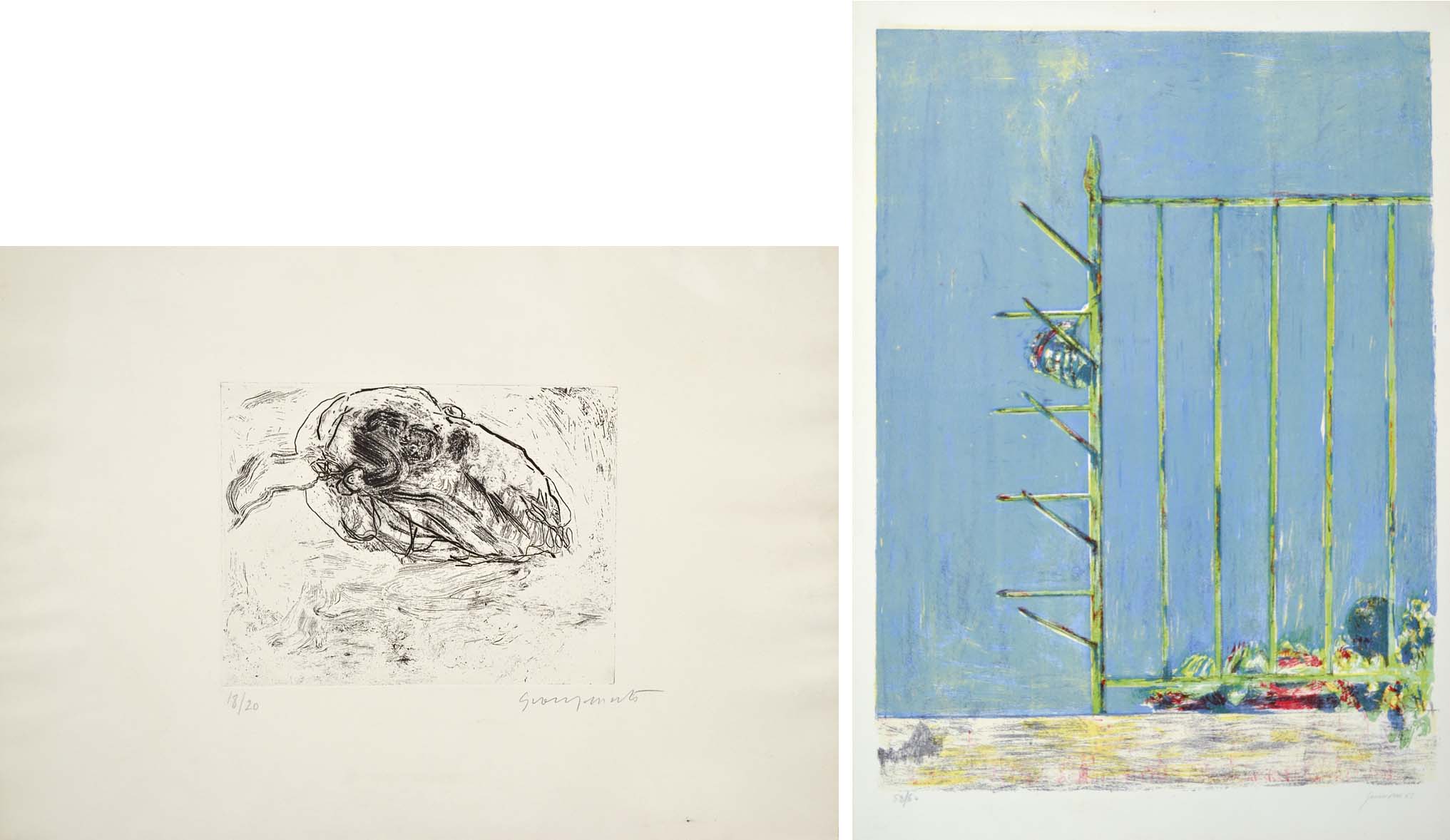 GIANQUINTO A. - GUCCIONE P. Soggetti vari lotto di 2 grafiche es. 18/20 e 52/60 50x70 cad. entrambe firmate e numerate in basso Gianquinto: acquaforte es. 18/20 cm24,5x32,5 (lastra) timbro a secco Il Torchio al retro Guccione: serigrafia es. 52/60