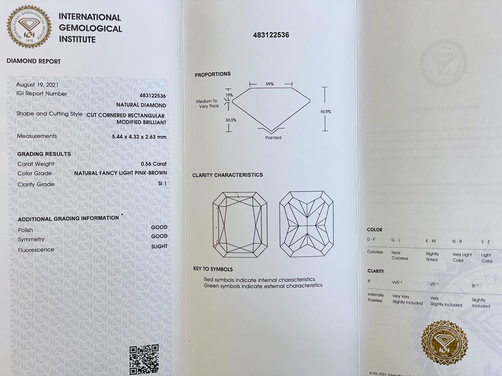 DIAMANTE 0,56 CT FANCY ROSA CHIARO MARRONE – PUREZZA SI1 - TAGLIO RADIANTE - CERTIFICATO IGI - Rs20803