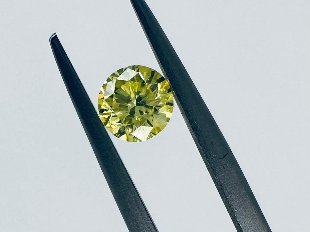 DIAMANTE COLORE E PUREZZA ESALTATA 0,6 CT FANCY GIALLO INTENSO VERDE - PUREZZA SI2 - TAGLIO BRILLANTE - CERTIFICATO ID - PUREZZA INCISO AL LASER - C30610-8