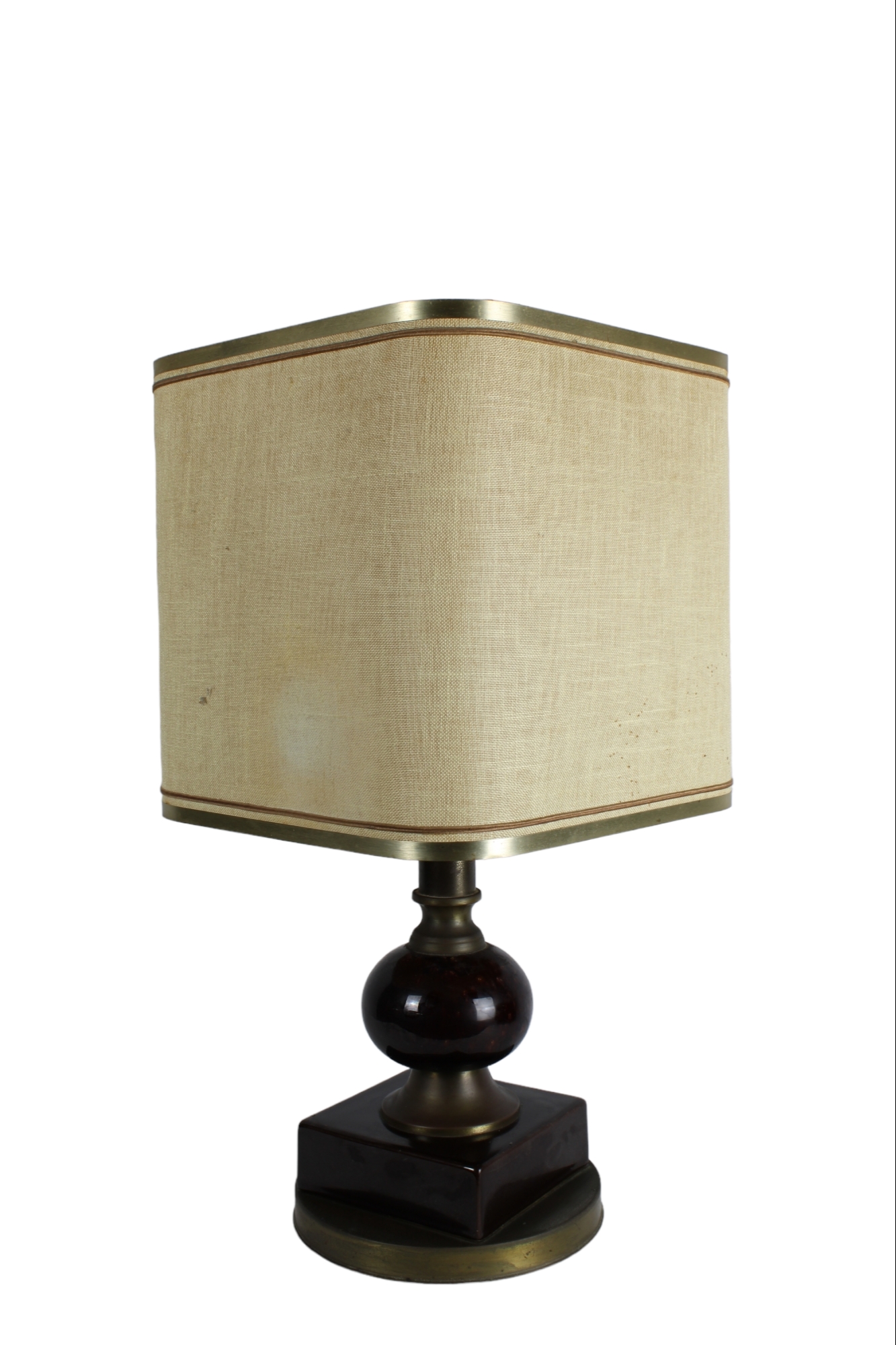 in porcellana e ottone con paralume in stoffa h cm 67,5 x 35 x 35