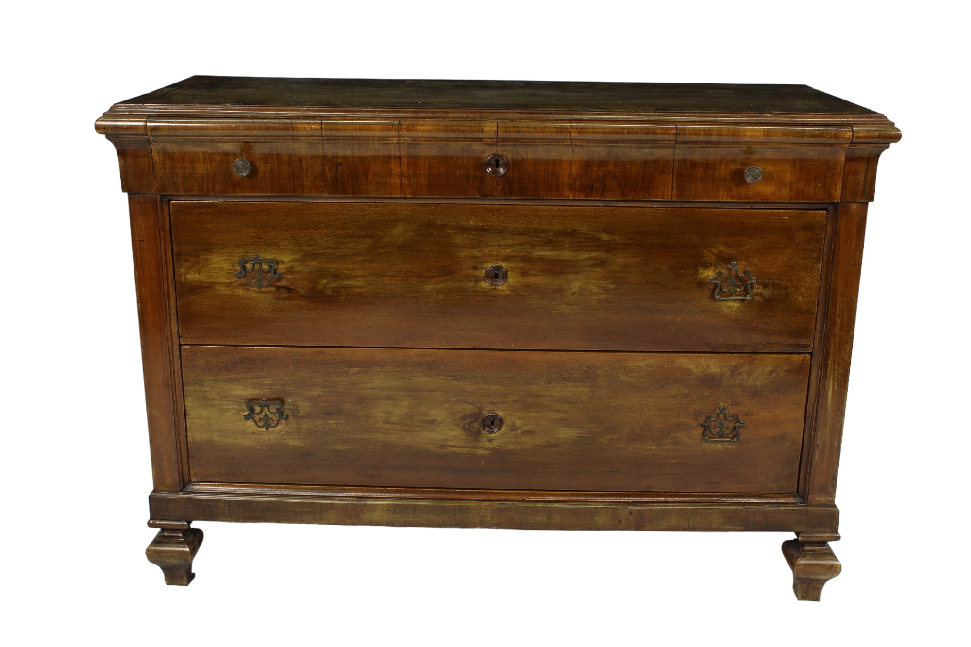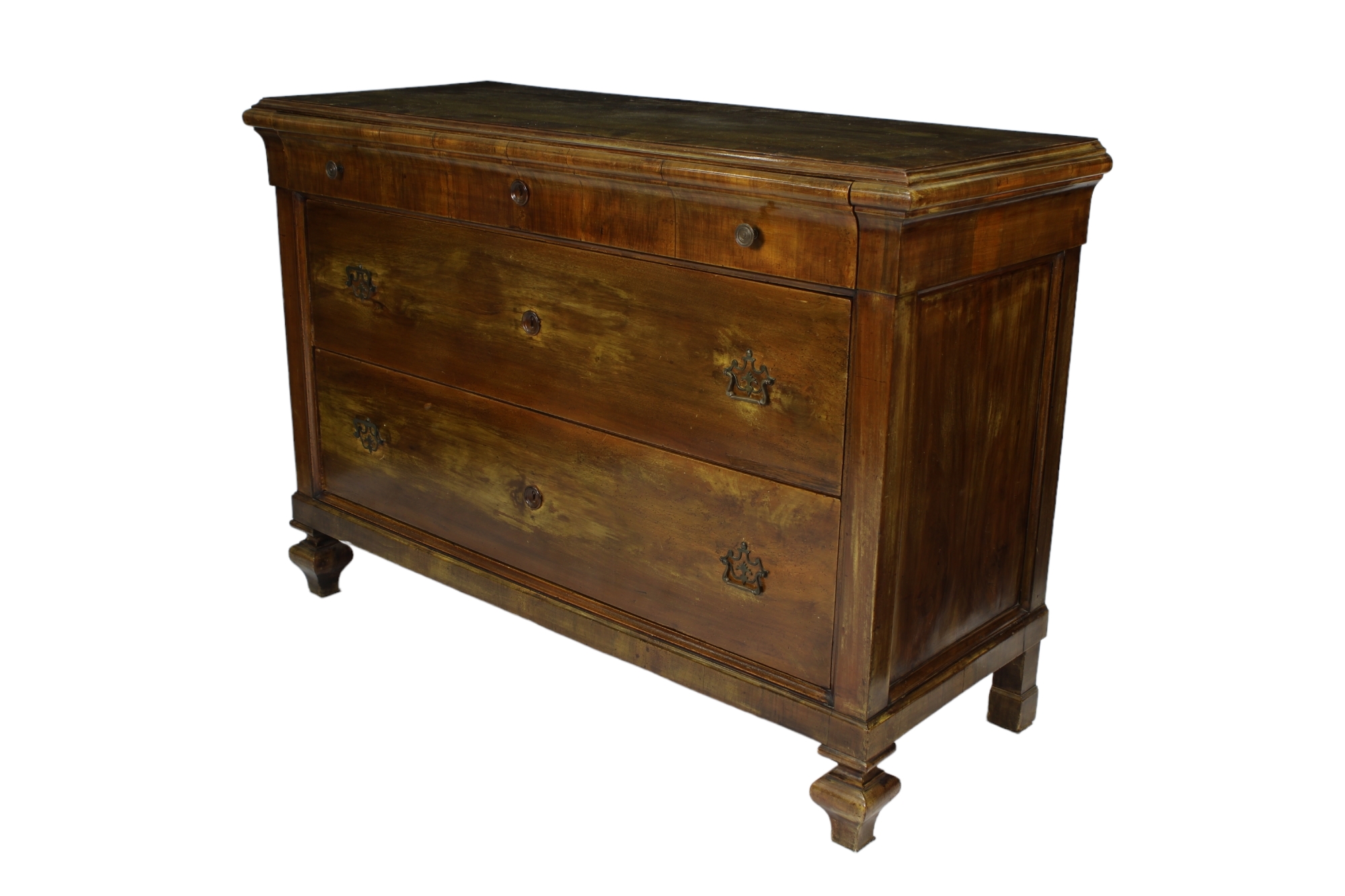in noce a 2 tiretti, piano in legno Francia XIX secolo h cm 96 x 138 x 56