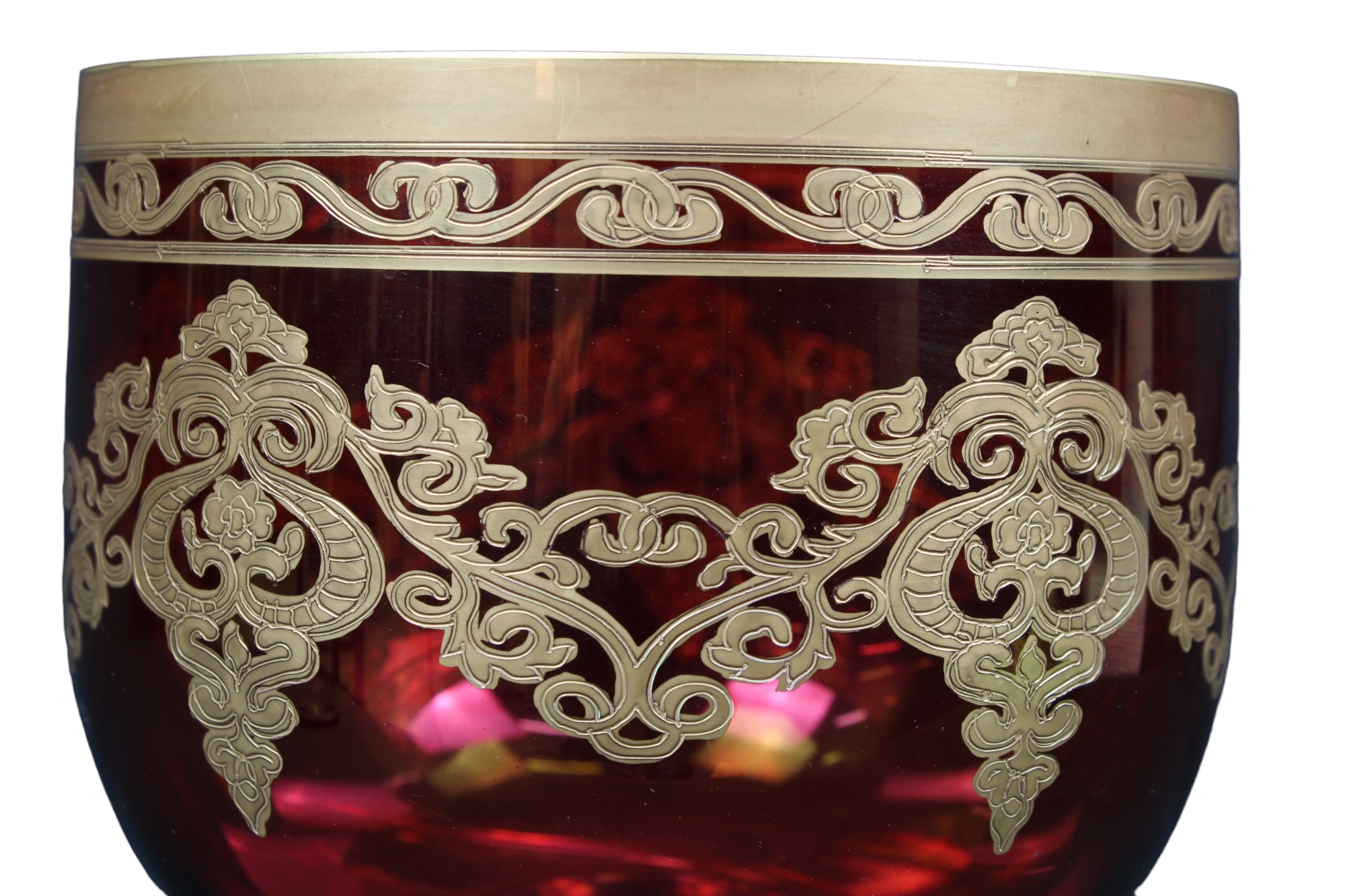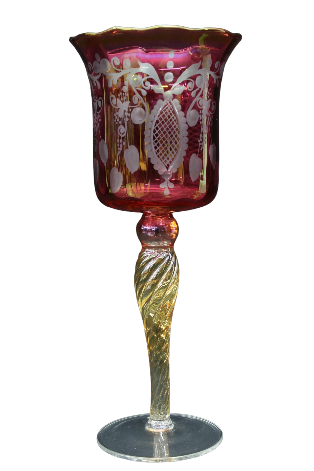 1 CALICE e 1 COPPIA in vetro decorato XX secolo Italia misure varie