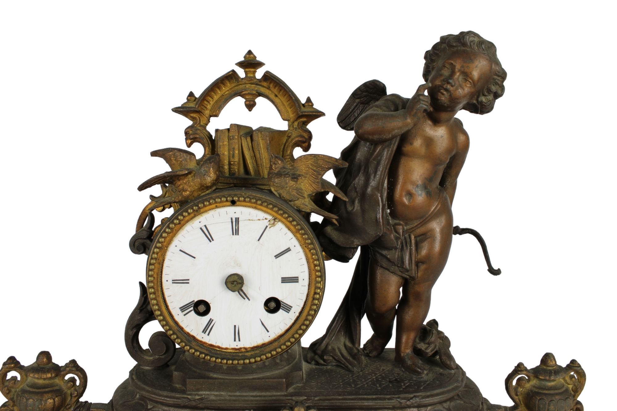 in antimonio, decorato da putto XIX secolo Francia h cm 33 x 35 x 13