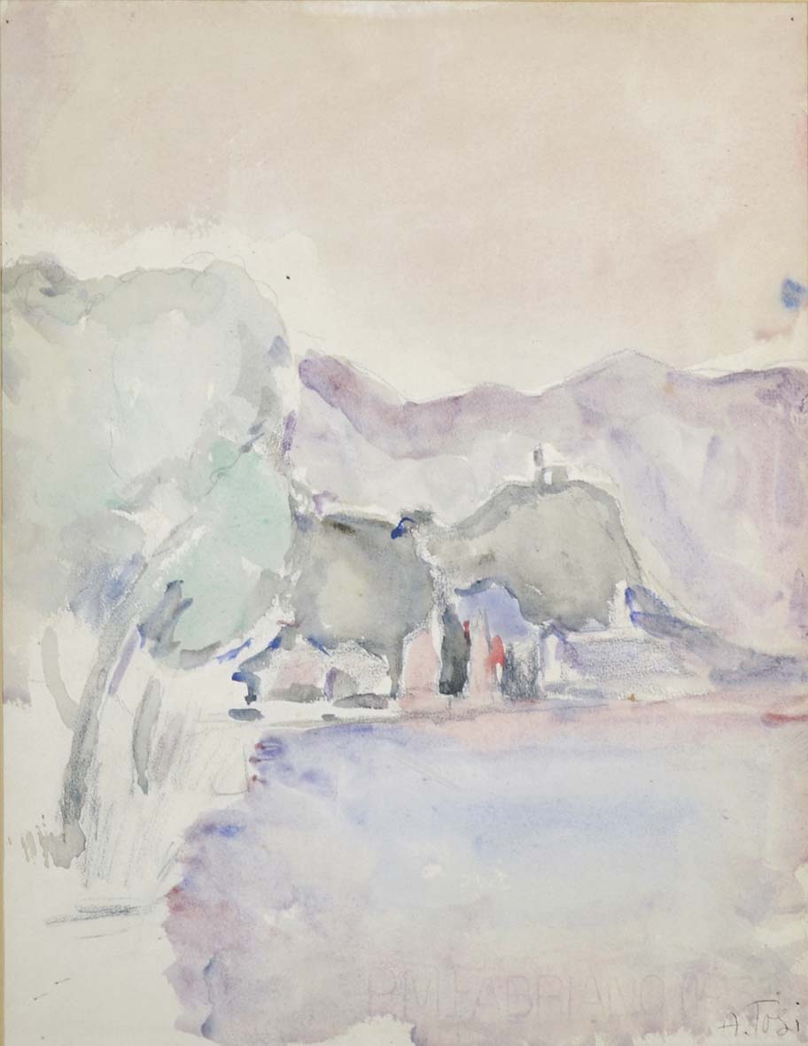 TOSI ARTURO Busto Arsizio 1871 - Milano 1956 Paesaggio tecnica mista su carta 36,5x28 firma in basso a destra Provenienza: già collezione Rimoldi Cortina Esposizioni: 1a Mostra delle Collezioni d'Arte Contemporanea Cortina d'Ampezzo 1941; Galleria d'Arte Al Sole Feltre