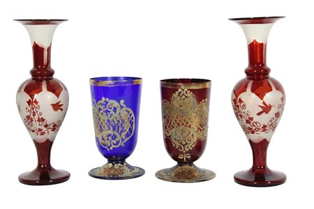in vetro di Murano Venezia XX secolo vasi h cm 26 x 9 / bicchieri h cm 16 x 9