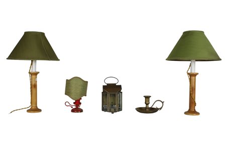 coppia lumi, lumetto, bugia in metallo e una lanterna in vetro XX secolo misure varie
