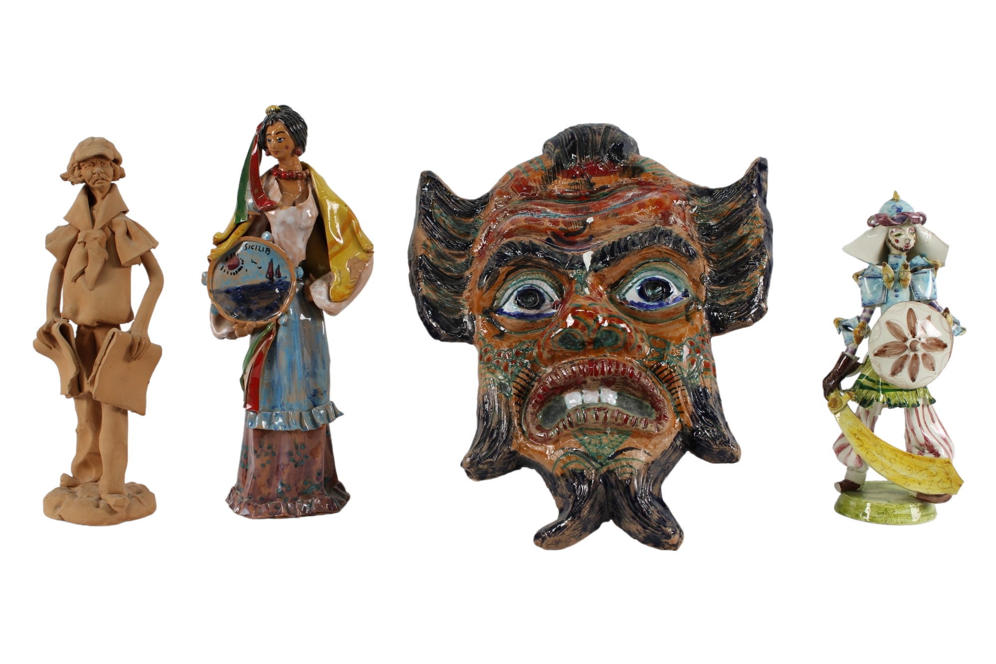 3 oggetti vari in terracotta maiolicata e 1 in terracotta grezza Sicilia vecchia fattura misure varie