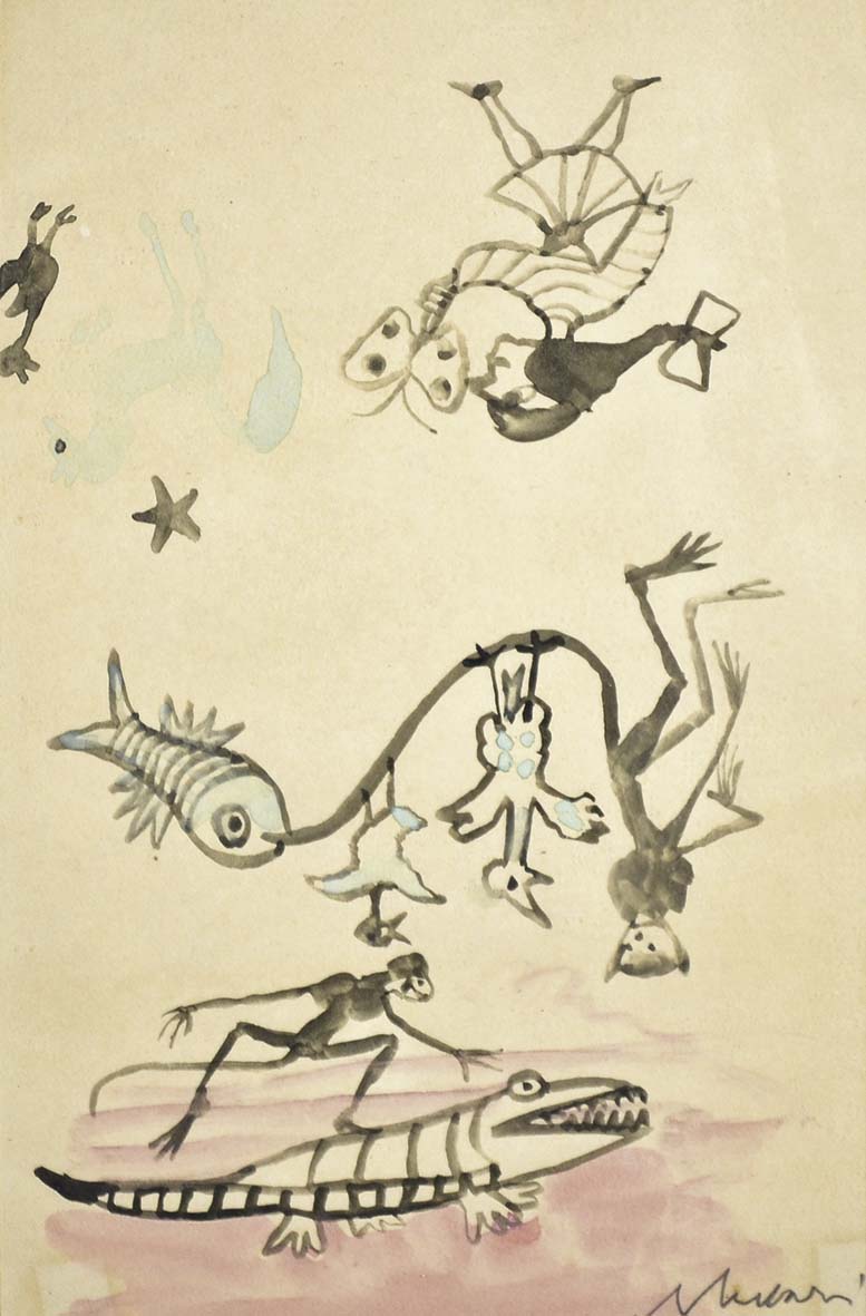 MACCARI MINO Siena 1898 - Roma 1989 Pagina d'album (anni'70) acquerello su...