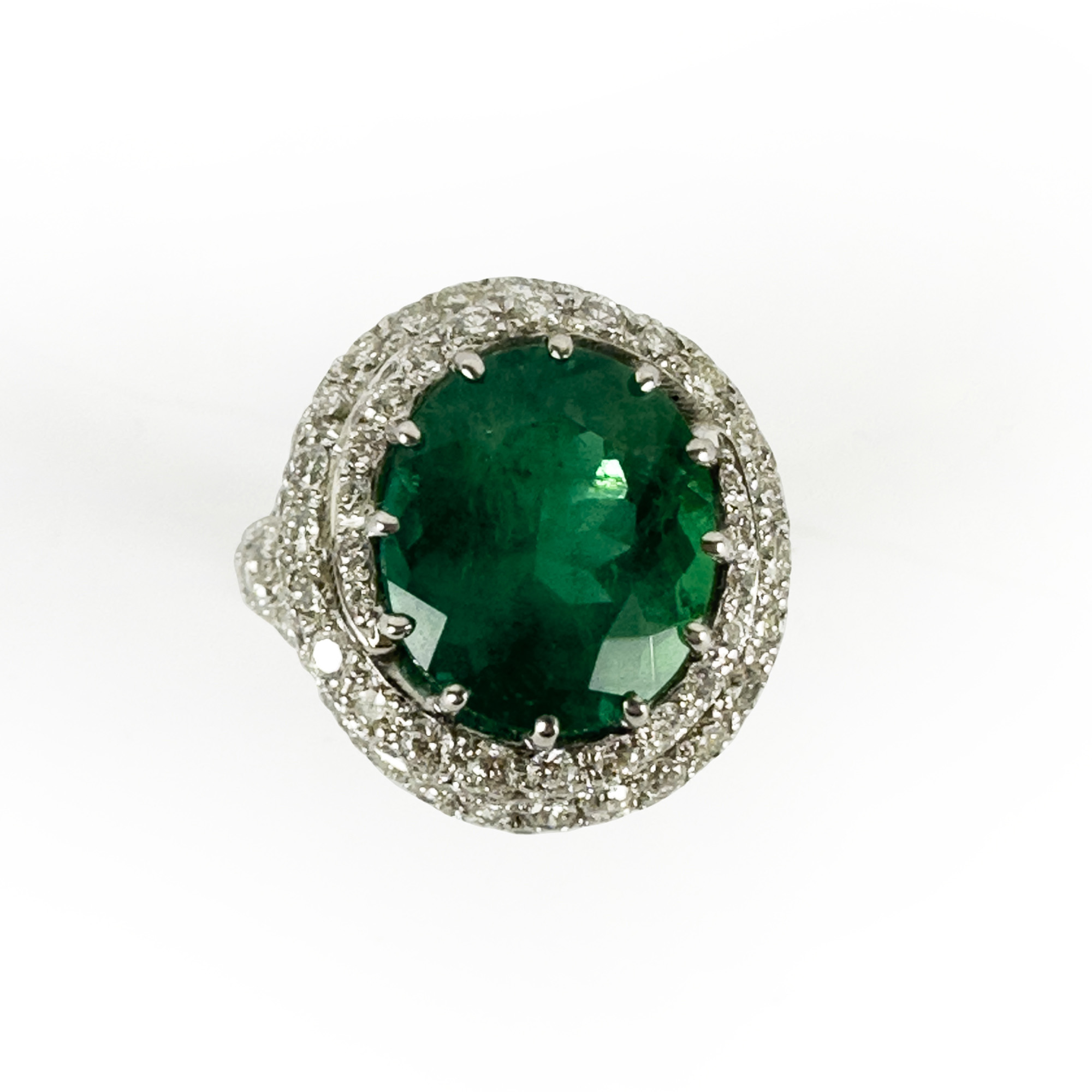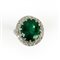 Anello in oro bianco 18kt. con smeraldo di ct. 7,56, e brillanti per ct. 2,86, mis. 14, peso gr. 16