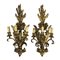 Coppia di appliques in legno e metallo dorato, a tre luci intagliate a motivi...